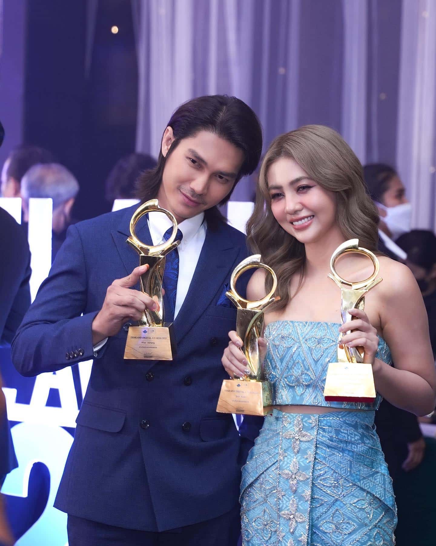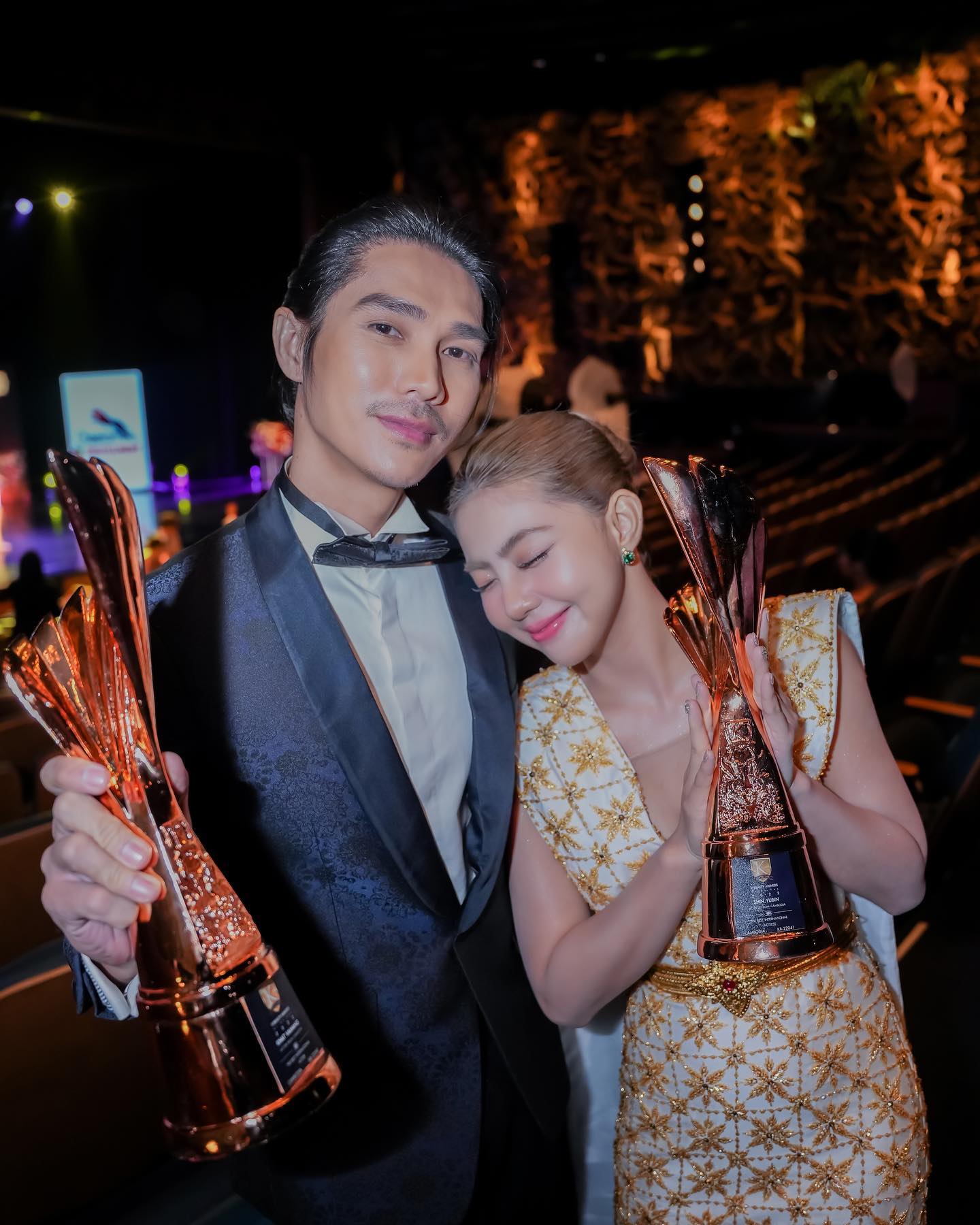 សូមជម្រាបថា កាលពីចុងឆ្នាំ ២០២២ លោក ខាត់ វ៉ៃហាំង និងកញ្ញា ស៊ីន យូប៊ីន ទើបត្រឡប់ពីទទួលពានរង្វាន់នៅប្រទេសថៃ។ ក្នុងនោះ អ្នកទាំងពីរទទួលបានពានរង្វាន់ សរុប ៥ រួមមាន ពានរង្វាន់ពីកម្មវិធី Thailand Digital Award 2022 ចំនួន ៣ ពាន គឺ ពានរង្វាន់តួឯកប្រុស និងតួឯកស្រីតាំងពីចាប់ផ្តើមរហូតដល់បច្ចុប្បន្ន (ម្នាក់មួយ) ពានរង្វាន់ដៃគូសម្តែងដ៏សាកសមបំផុតរបស់ស្ថានីយ៍ទូរទស្សន៍ដ៏ល្បីប្រចាំប្រទេសកម្ពុជាប្រចាំឆ្នាំ ២០២២ (មួយ) និងពានរង្វាន់ពីកម្មវិធី THE BEST OF K-BEAUTY AWARD 2022 ចំនួន ២ ពាន គឺ The Best International Actor and Actress 2022 (ម្នាក់មួយ)៕