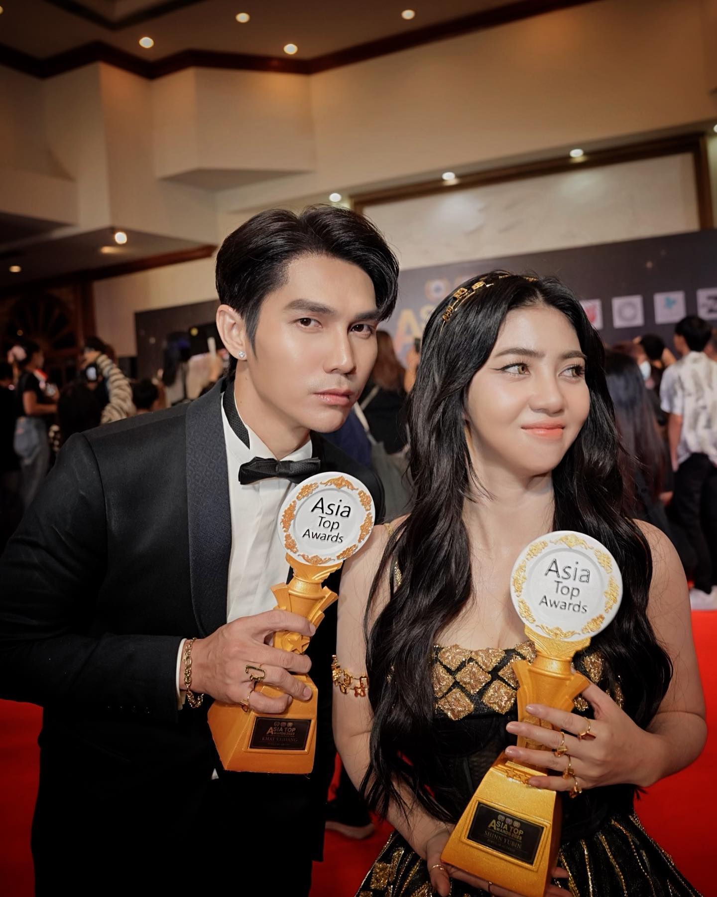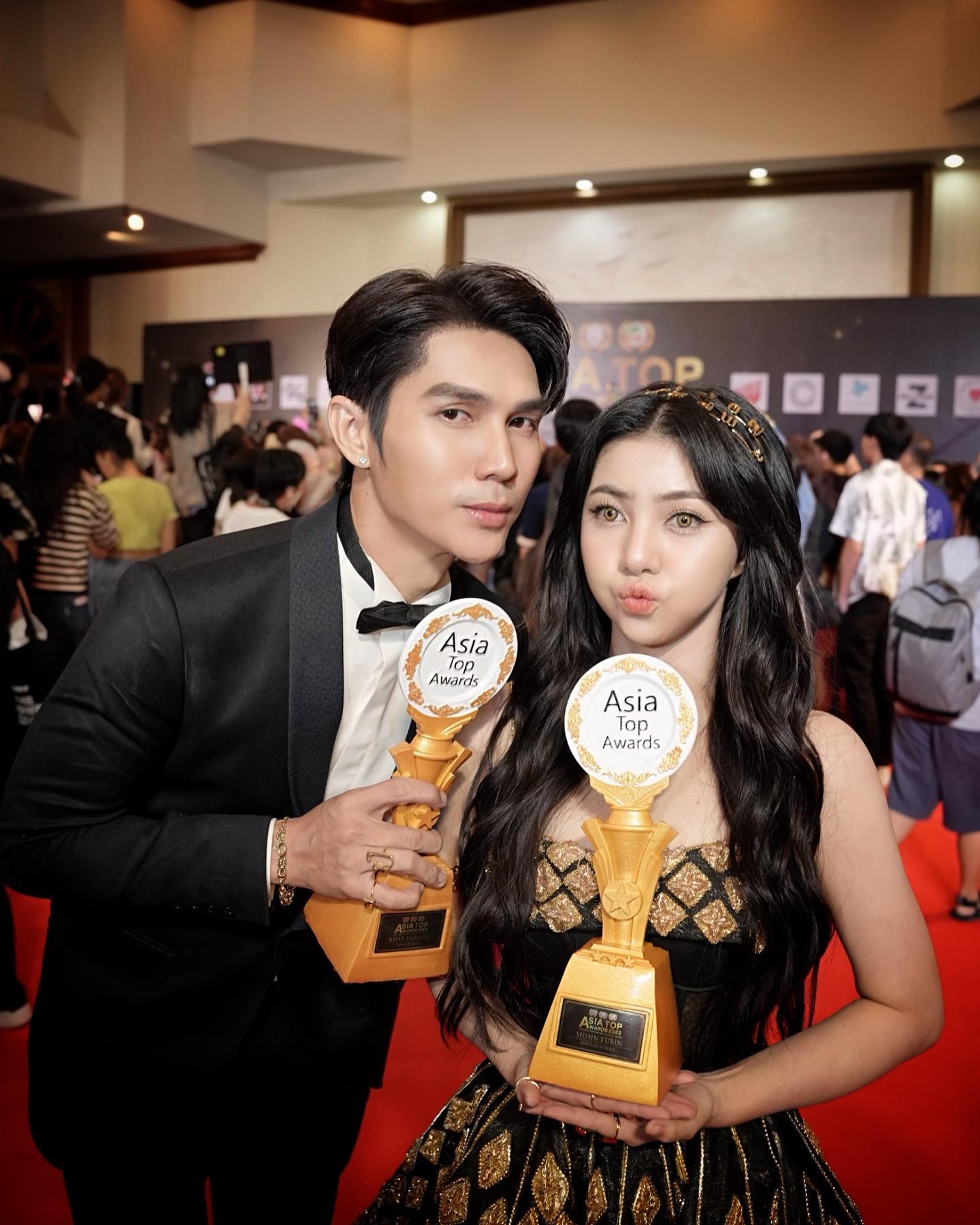 ថ្មីទៀតហើយ ដែលតារាសម្តែងឆ្នើមជួរមុខលំដាប់ប្រទេស ២ រូប គឺ ស៊ីន យូប៊ីន និង ខាត់ វ៉ៃហាំង ដឹកដៃគ្នាឡើងទទួលពានរង្វាន់នៅបរទេស។ យប់មិញ វ៉ៃហាំង និង យូប៊ីន បានបណ្តើរគ្នាឡើងទទួលពានរង្វាន់ ២ ពីកម្មវិធី ASIA TOP AWARD 2023 នៅប្រទេសថៃ ដែលក្នុងនោះរួមមាន ពានរង្វាន់តារាសម្តែងស្រីមានប្រជាប្រិយភាពប្រចាំឆ្នាំ (popular actress of the year) ផ្តល់ជូន យូប៊ីន និងពានរង្វាន់តារាសម្តែងប្រុសមានប្រជាប្រិយភាពប្រចាំឆ្នាំ (popular actor of the year) បានលើ ខាត់ វ៉ៃហាំង។