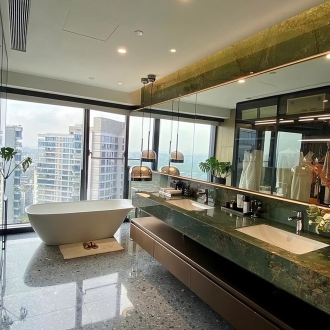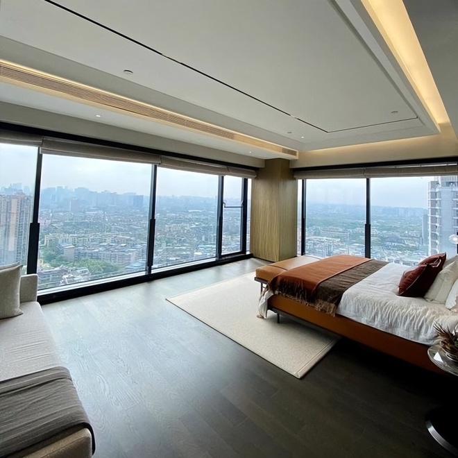 បន្ទប់គេងធំទូលាយ និងបន្ទប់ទឹកពោរពេញដោយពន្លឺធម្មជាតិ អាងងូតទឹកត្រូវបានរៀបចំនៅជិតទ្វារកញ្ចក់ បង្កើតអារម្មណ៍ធូរស្រាលខ្លាំងសម្រាប់ការសម្រាកលំហែ។ តាមការបញ្ជាក់របស់តារាស្រីរូបនេះ បន្ទះកញ្ចក់អគារត្រូវបានធ្វើឡើងយ៉ាងពិសេស ដើម្បីឱ្យអាចមើលឃើញពីខាងក្នុងចេញមកខាងក្រៅ តែមិនអាចមើលឃើញពីខាងក្រៅចូលមកក្នុងបានឡើយ ដើម្បីធានាភាពឯកជន។ សម្រាប់ភាពងាយស្រួលបន្ថែម នាងក៏បានដំឡើងវាំងននស្វ័យប្រវត្តិផងដែរ។