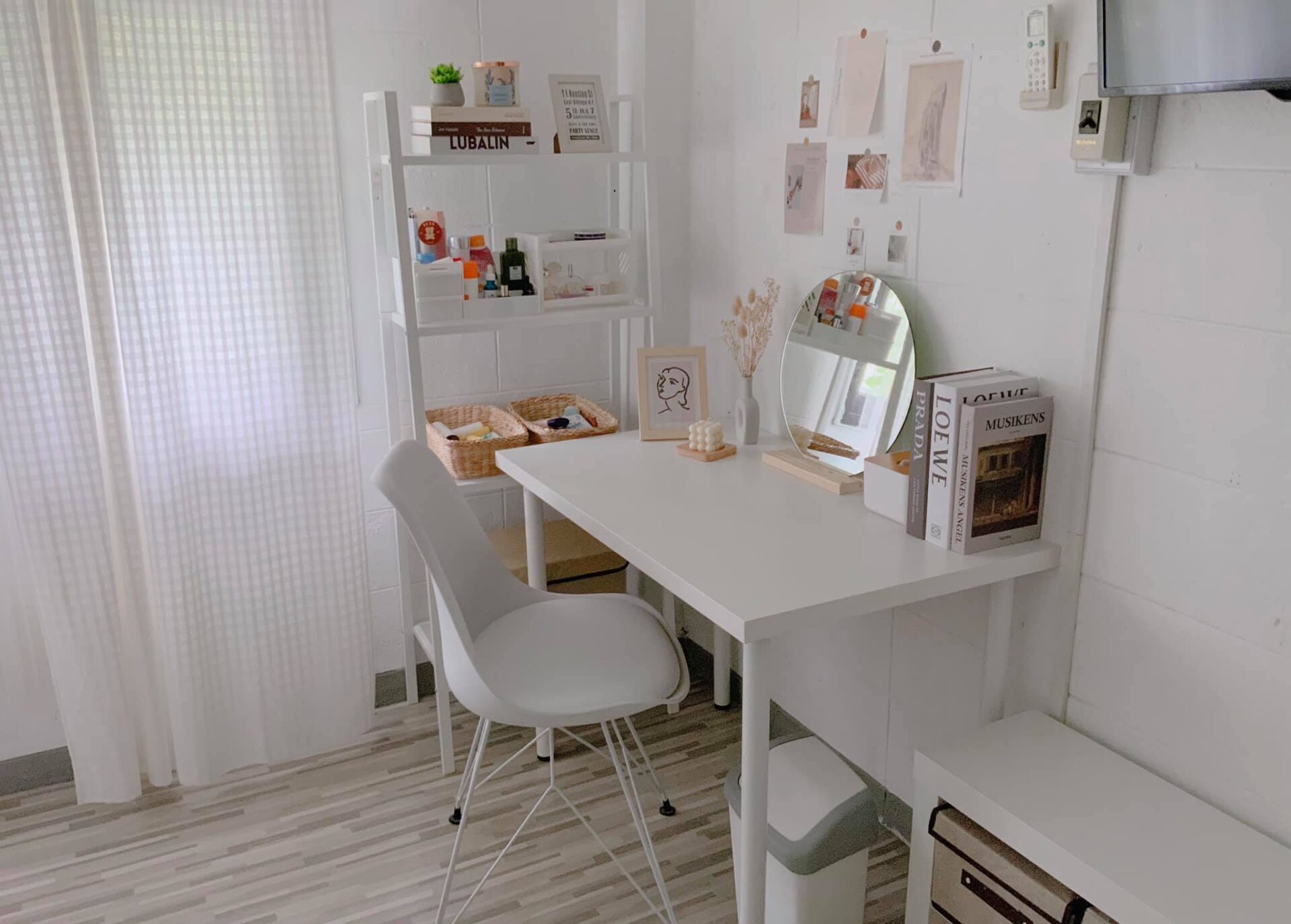 រៀបចំទុកដាក់សៀវភៅឯកសារផ្សេងៗ នៅលើតុឲ្យមានរបៀប និងជាចុងក្រោយរកមើលដើមឈើពណ៌បៃតងតូចៗ មកដាក់តាំងក្នុងបន្ទប់ដើម្បីជួយបន្ថែមភាពស្រស់ស្រាយដល់បន្ទប់របស់អ្នកបានមួយកម្រិតទៀត ៕