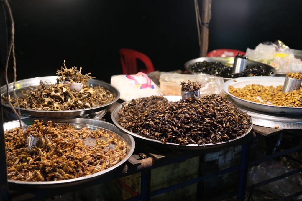 បើក្រឡេកទៅផ្លូវខាងៗវិញ ភាគច្រើនជាប្រភេទអាហារអាំង ដែលមើលទៅមានផ្សែងហុយៗ ក្លិនឈ្ងុយៗទាក់ទាញចំណាប់អារម្មណ៍អ្នកទិញជាខ្លាំង មានដូចជាកោះ-ថ្លើម ក្រួច កង្កែបបោក ត្រី គូថមាន់ និងប្រហិត ជាដើម។