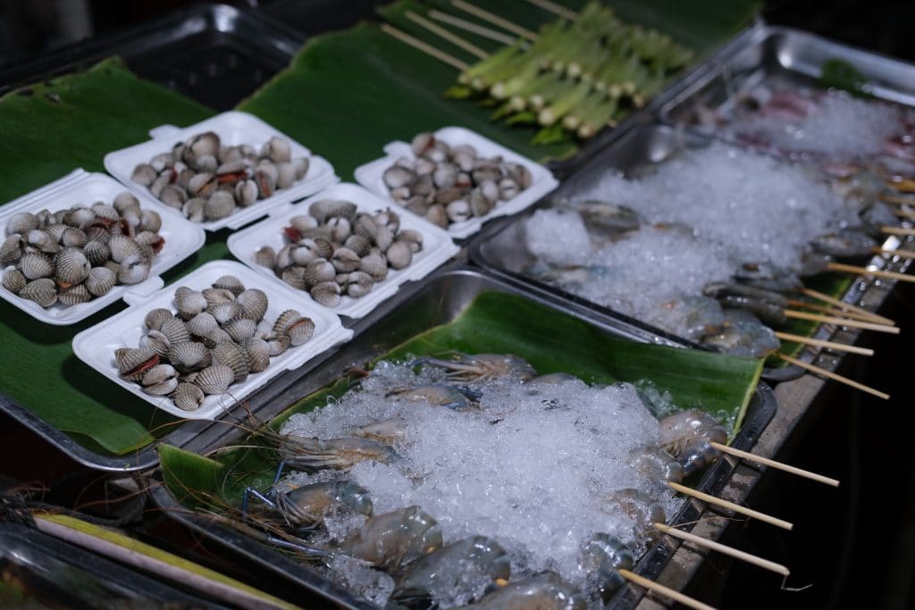 បន្តដំណើរទៅមុខផុតពីផ្សារសម្លៀកបំពាក់តាមដងផ្លូវ (Street Market) ជាខ្សែនៃតូបអាហារបន្តៗគ្នា ដែលភាគច្រើនបម្រើនូវអាហារចម្អិនភ្លាមៗ។ គ្រាន់តែដើរចូលទៅរកកន្លែងអង្គុយ កុម្ម៉ង់អាហារ រង់ចាំបន្តិច អាចញ៉ាំបានហើយ! ហើយមុខម្ហូបមានទៅតាមតូបផ្សេងៗគ្នា ក្នុងនោះមានបាញ់ឆែវ សាច់គោអាំង សង្វាក់ នំបញ្ចុក ខួរចំហុយ បុកល្ហុង ពងមាន់ដុត ប្រហិតបំពង នំប៉័ងលាបប៊័រ លៀសឆាលើចានដែក ពងទាកូនបំពង ពងក្រួចស្ងោរ ពងទាកូនស្ងោរ នំគ្រក់ ។ល។