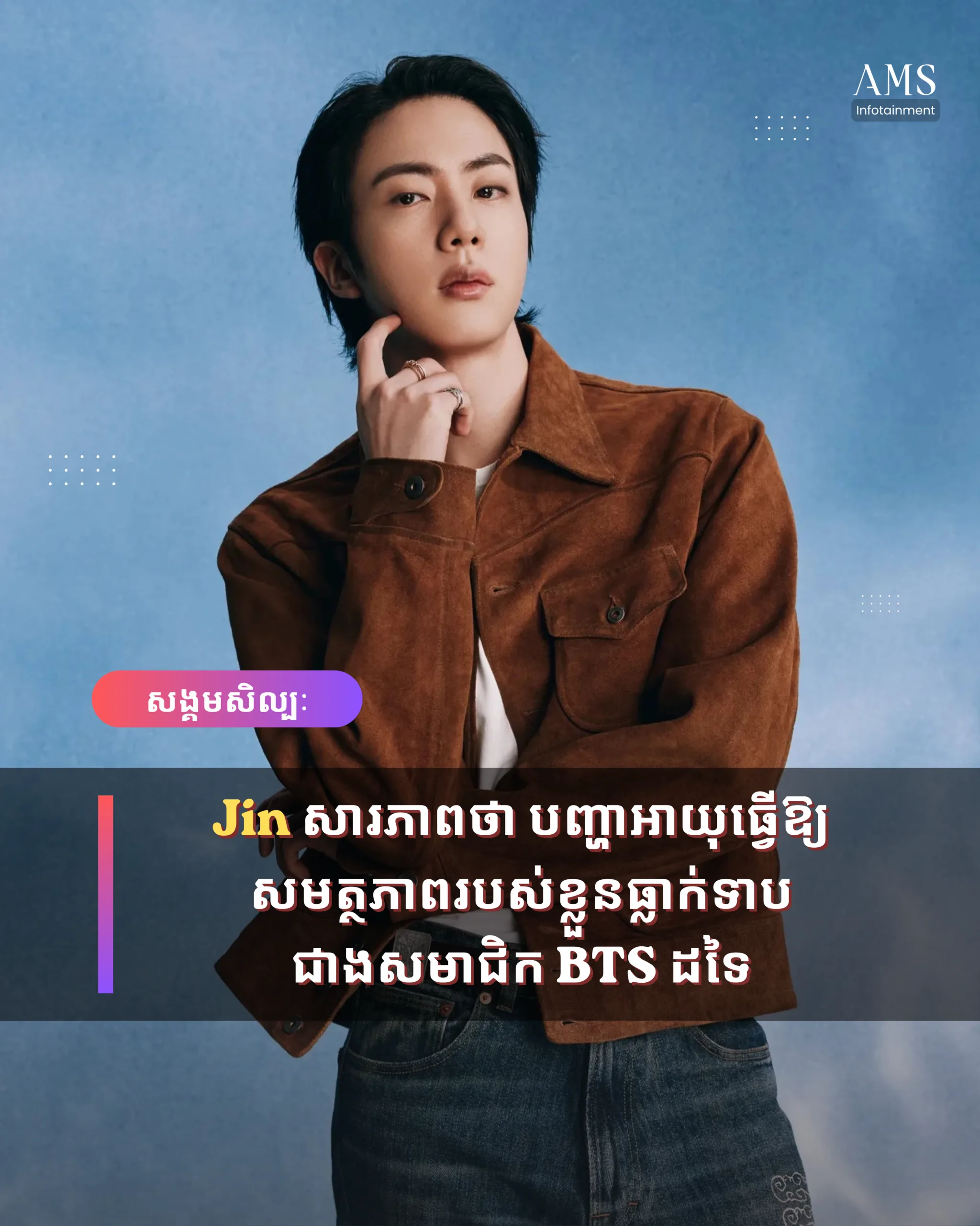Jin បានអង្គុយជជែកជាមួយទស្សនាវដ្តី Rolling Stone ពីការត្រឡប់មកធ្វើការ និងការជួបជុំគ្នាវិញក្នុងរយៈពេលជិត ៤ ឆ្នាំរបស់ BTS។ ក្នុងឱកាសនោះ បងធំប្រចាំក្រុមរូបនេះ បានបើកចិត្តនិយាយអំពីបញ្ហាអាយុ ដែលចាប់ផ្តើមក្លាយជាឧបសគ្គក្នុងអាជីពជាអាយដលនៃវិស័យ K-Pop។