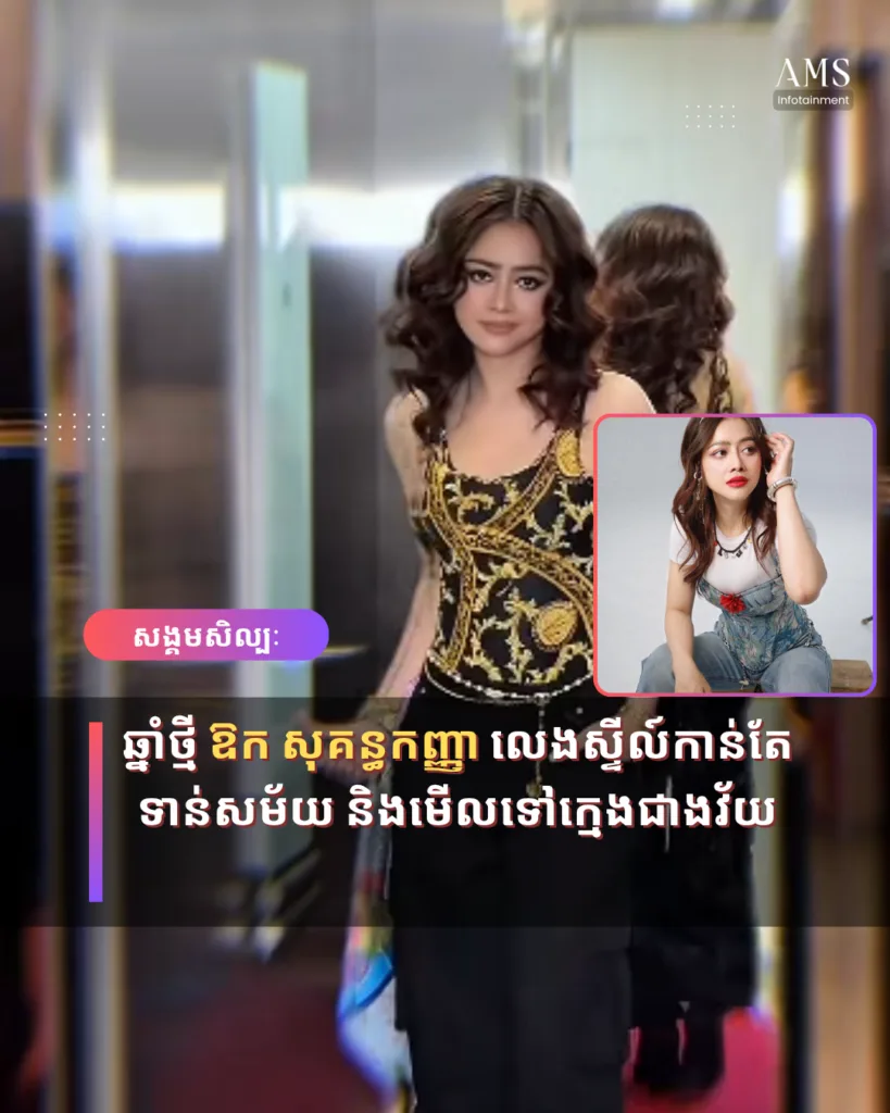 សម្រាប់ឆ្នាំថ្មី ២០២៦ នេះដែរ ឱក សុគន្ធកញ្ញា បានតារាស្រីសាច់ចាំមិនចេះ លេងស្ទីល៍ខោជើងធំហោប៉ៅ ៦ ខោខោវប៊យ និងអាវដៃតូច ដោយសក់វិញក៏ជាម៉ូដដែលយុវវ័យសម័យថ្មីពេញនិយមផងដែរ ដោយមូលរួញភ្លីធំ និងមានបន្ថែមដង្កៀបតូចៗ ឬក្រងសក់តូចៗទម្លាក់ទៀត។