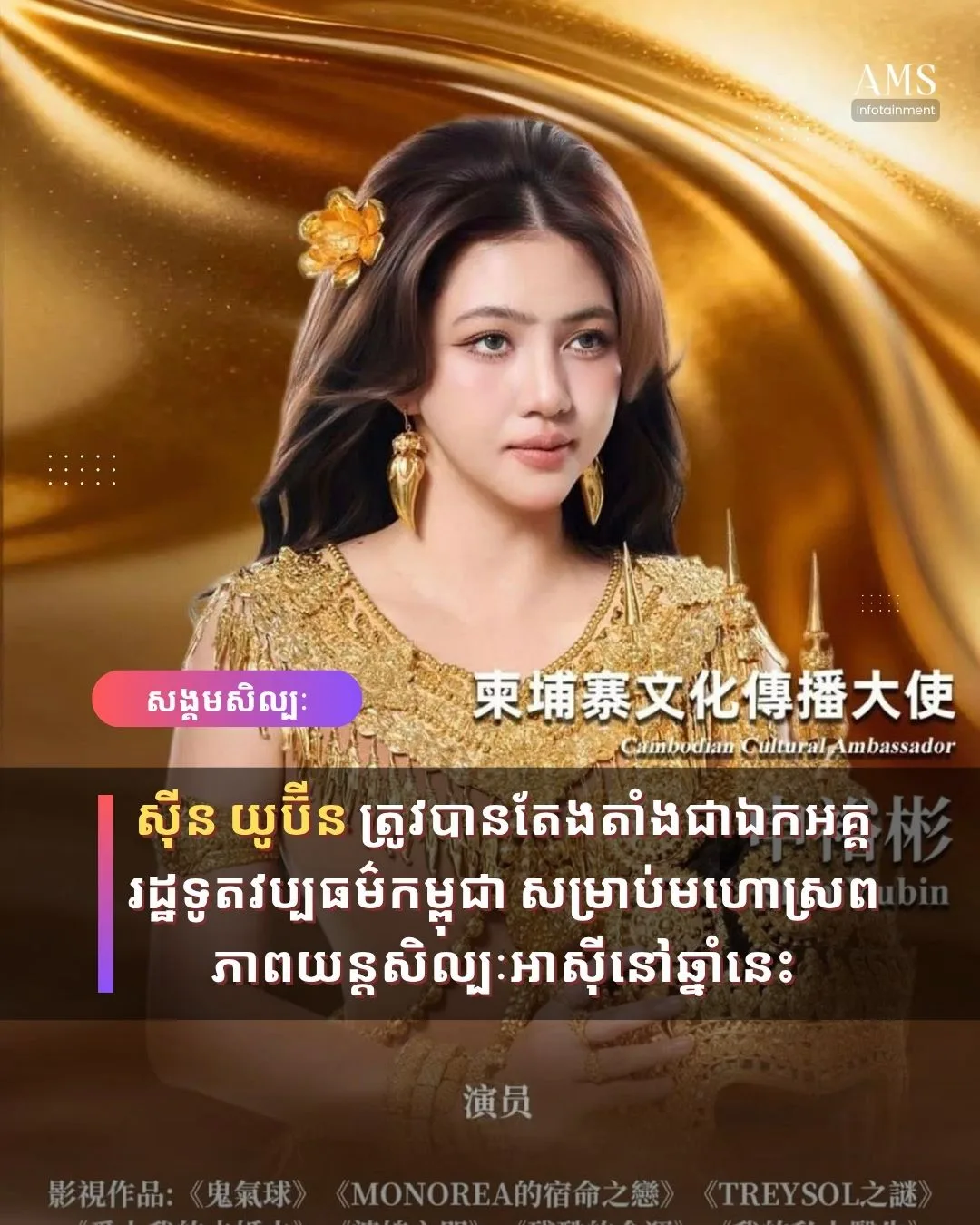 ស៊ីន យូប៊ីន ត្រូវតែងតាំងជាឯកអគ្គរដ្ឋទូតវប្បធម៌កម្ពុជា សម្រាប់មហោស្រពភាពយន្តសិល្បៈអាស៊ីនៅឆ្នាំនេះ