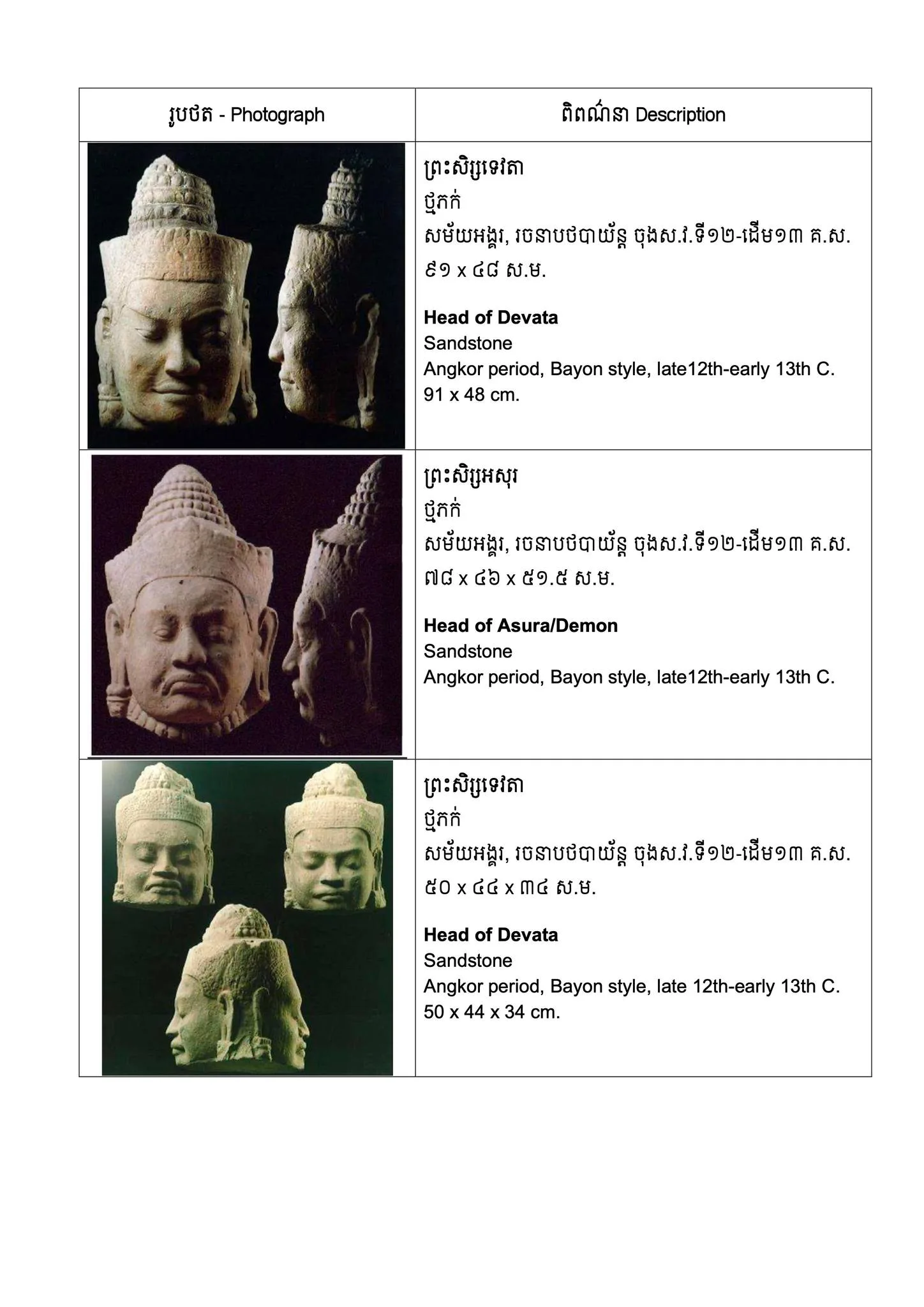 សមុច្ច័យដែលបានប្រគល់មកវិញមានលក្ខណៈចម្រុះ សាងពីថ្មភក់ និងសំរឹទ្ធ រូបបដិមាសម័យបាយ័ន ដែលត្រូវបានជឿយ៉ាងមុតមាំថាមានប្រភពដើមមកពីក្រុងអង្គរធំ។ វត្ថុបុរាណទាំង ២០ រូប ត្រូវបានទាមទារពីអ្នកកាន់កាប់សមុច្ច័យឯកជនមួយនៅតំបន់អាស៊ី ហើយដំណើរការទាមទារនេះ អាចសម្រេចទៅបាន ដោយមានការចូលរួមជ្រោមជ្រែងពីអ្នកជំនាញនៃក្រុមការងារស្រាវជ្រាវក្រៅប្រទេសផងដែរ។