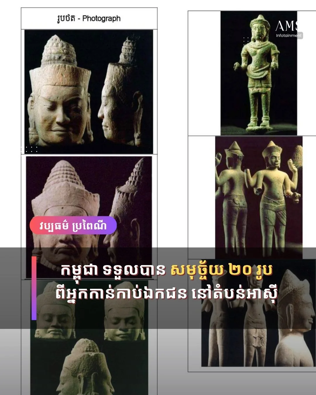 មុននេះក្រសួងវប្បធម៌និងវិចិត្រសិល្បៈ បានបង្ហោះជូនដំណឹងលើផេកផ្លូវការ ពីការវិលត្រឡប់នៃវត្ថុបុរាណខ្មែរចំនួន ២០ រូបមកកាន់មាតុភូមិកំណើត ពោលគឺប្រទេសកម្ពុជា ក្រោយឃ្លាតចាកអស់រយៈពេលជាច្រើនឆ្នាំមកនេះ។