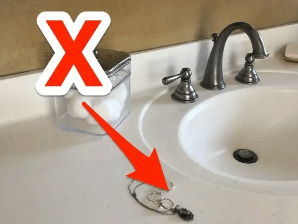 មនុស្សជាច្រើនឧស្សាហ៍ដាក់គ្រឿងអលង្ការរបស់ខ្លួននៅក្នុងបន្ទប់ទឹក ជាពិសេសគឺមនុស្សស្រីដែលដាក់ក្រវិលរបស់ខ្លួននៅទីនោះគឺដោយសារតែវាងាយឆ្លុះកញ្ចក់និងពាក់នៅទីនោះតែម្ដង។ វាមិនមានផលប៉ះពាល់អ្វីដល់យើងឡើយពីការដាក់គ្រឿងអលង្ការនៅក្នុងបន្ទប់ទឹក តែផ្ទុយទៅវិញវាអាចប៉ះពាល់ដល់គ្រឿងអលង្ការនោះ។ បន្ទប់ទឹកជាកន្លែងមានសំណើមដែលងាយនឹងធ្វើឲ្យគ្រឿងអលង្ការនោះកាន់តែកង្វក់ ជាពិសេសគ្រឿងអលង្ការប្រភេទប្រាក់។