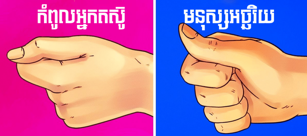 បន្ទាប់ពីអានចប់សាកក្ដាប់ដៃបន្ដិចមើល ថាតើប្រិយមិត្តចូលក្នុងចំណុចមួយណា?
