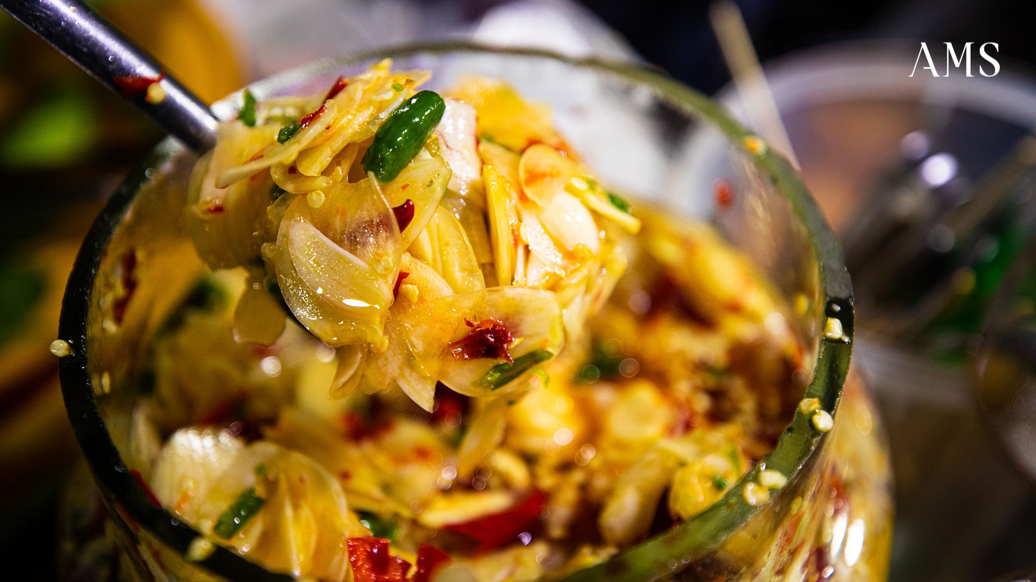 ជាទូទៅយើងធ្លាប់តែញ៉ាំគាវចៀនស្នូលសាច់ជ្រូកចិញ្ច្រាំ តែកន្លែងគាត់គឺប្រើស្នូលប្រហិតត្រី។ គាវរបស់គាត់គឺជាអ្វីដែលក្រុមការងារយើងចង់ឲ្យប្រិយមិត្តបានសាកខ្លាំងមែនទែន។ សំបកគាវស្រួយ ស្នូលប្រហិតត្រីស្វិតល្អញាំជាមួយជ្រក់ខ្ទឹមជូរហឹរឆ្ងាញ់ខ្លាំងមែនទែន។ មូលហេតុដែលគាត់ប្រើប្រហិតត្រីមកធ្វើជាស្នូលគាវគឺដើម្បីឲ្យបងប្អូនខ្មែរឥស្លាមគាត់ក៏អាចមកញ៉ាំនៅកន្លែងនេះបាន។