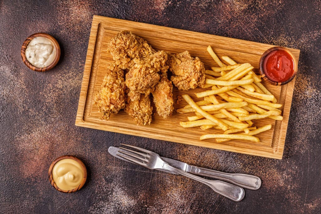 ការញ៉ាំអាហារលឿន ឬ fast food ភាគច្រើនពេញនិយមយ៉ាងខ្លាំងសម្រាប់ក្មេងៗ ឬយុវវ័យ ហើយជាមធ្យមពួកគេតែងតែញ៉ាំ២ ទៅ ៣ដងក្នុងមួយសប្ដាហ៍។ តាមការស្រាវជ្រាវពីគេហទំព័រ Harvard Health Publsihing បានធ្វើការសិក្សាពីភាពសុខគ្នារវាងបុរស និងស្ត្រីនៅពេលពួកគេមានអារម្មណ៍ស្រ្តេស ហើយលទ្ធផលបានបង្ហាញថាភាគច្រើនស្រ្តីស្ទើរទាំងអស់ប្រើប្រាស់ការញ៉ាំមកដោះស្រាយ ខណៈពេលដែលបុរសប្រើប្រាស់ការផឹកស្រា ឬជក់បារី។ ចំពោះអាហារដែលស្រ្តីទាំងនោះញ៉ាំ ភាគច្រើនជាអាហារដែលមានខ្លាញ់ច្រើន ឬfast food។ ការទទួលទានអាហារលឿន ឬFast food បែបនេះច្រើនពេកនឹងអាចបង្ករជាជំងឺធ្លាក់ទឹកចិត្តបាន ដោយសារតែនៅក្នុងអាហារទាំងនោះមានផ្ទុកនូវសារធាតុខ្លាញ់ឆ្អែត trans fat និង omega 6 fatty acid ដែលវាមានមុខងារទៅបង្ករការរលាកដល់ខួរក្បាលហើយបណ្ដាលជាជំងឺថប់អារម្មណ៍ នេះយោងតាមវេបសាយ Los Angeles Times ដែលបានចុះ ពីការស្រាវជ្រាវមួយរបស់លោកHolly Van Hare នៅខែធ្នូ ឆ្នាំ២០១៨ ទៅលើប្រធានបទ “The Daily Meal”៕