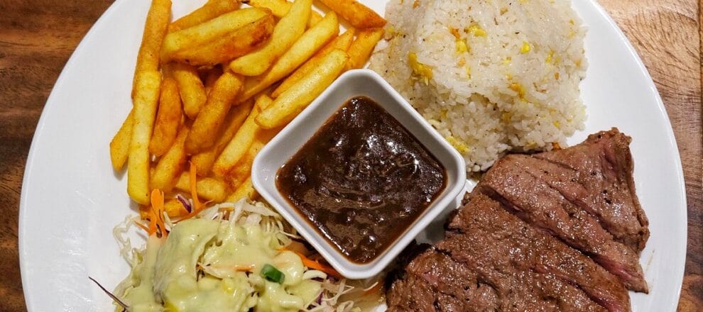 វាជាប្រភេទស្តេកសាច់គោអូស្ត្រាលី ត្រង់ផ្នែកត្រកៀក ផុយល្អណាស់! មិនមែនមានតែសាច់ទេ តែក្នុងនោះមានការផ្តល់ជូនជាមួយបាយ សាឡាដ និងដំឡូងបារាំងបំពង ក្នុងចានតែមួយផងដែរ។ សម្រាប់សាច់វិញ មិនស្វិតនោះទេ ស្រស់ល្អ ហើយភ្ញៀវក៏អាចកម្មង់កម្រិតទៅតាមចំណង់ចំណូលចិត្តផងដែរ ចាប់ពីចន្លោះ ១៥ ភាគរយ រហូតដល់ ១០០ ភាគរយ។ សាកសមសម្រាប់អ្នកចូលចិត្តញ៊ាំស្តេកសាច់គោពិតប្រាកដ ព្រោះមានចំណុះច្រើន ជាពិសេសតម្លៃសមរម្យ កាន់តែមិនខកចិត្ត គឺរសជាតិពិតជាសមនឹងតម្លៃ។ សូម្បីទឹកជ្រលក់ក៏ផ្សំគ្រឿងត្រឹមត្រូវ មិនផ្អែមពេក មិនជូរពេក ជារួមជ្រលក់ជាមួយសាច់គោជ្រាបចូលមាត់ត្រូវគ្រឿងល្អ។