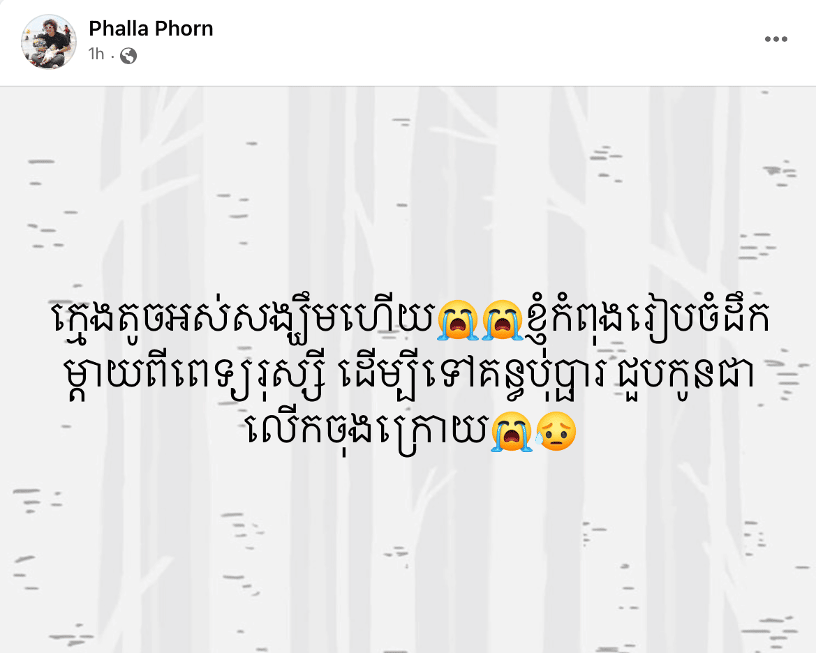 មិនយូរប៉ុន្មាន ក្រោយការបង្ហោះព្រោងព្រាតរបស់ តារា-បុគ្គលល្បីៗក្នុងរង្វង់សិល្បៈ ស្រាប់តែ គណនីផ្លូវការ Phalla Phorn (ផន ផល្លា) ដែលគ្រប់គ្នាស្គាល់ថាជាបុគ្គលសកម្មក្នុងការងារមនុស្សធម៌ បានបង្ហោះឡើងឱ្យដឹងថា ទារកដែលរងគ្រោះថ្នាក់ចរាចរណ៍នោះអស់សង្ឃឹមហើយ ដែលដំណឹងនេះធ្វើឱ្យសិល្បករ-សិល្បការិនីក្នុងរង្វង់សិល្បៈ រួមទាំងមហាជនមានក្តីអាណិតអាសូរដល់ទារក និងក្រុមគ្រួសារជាពន់ពេក។