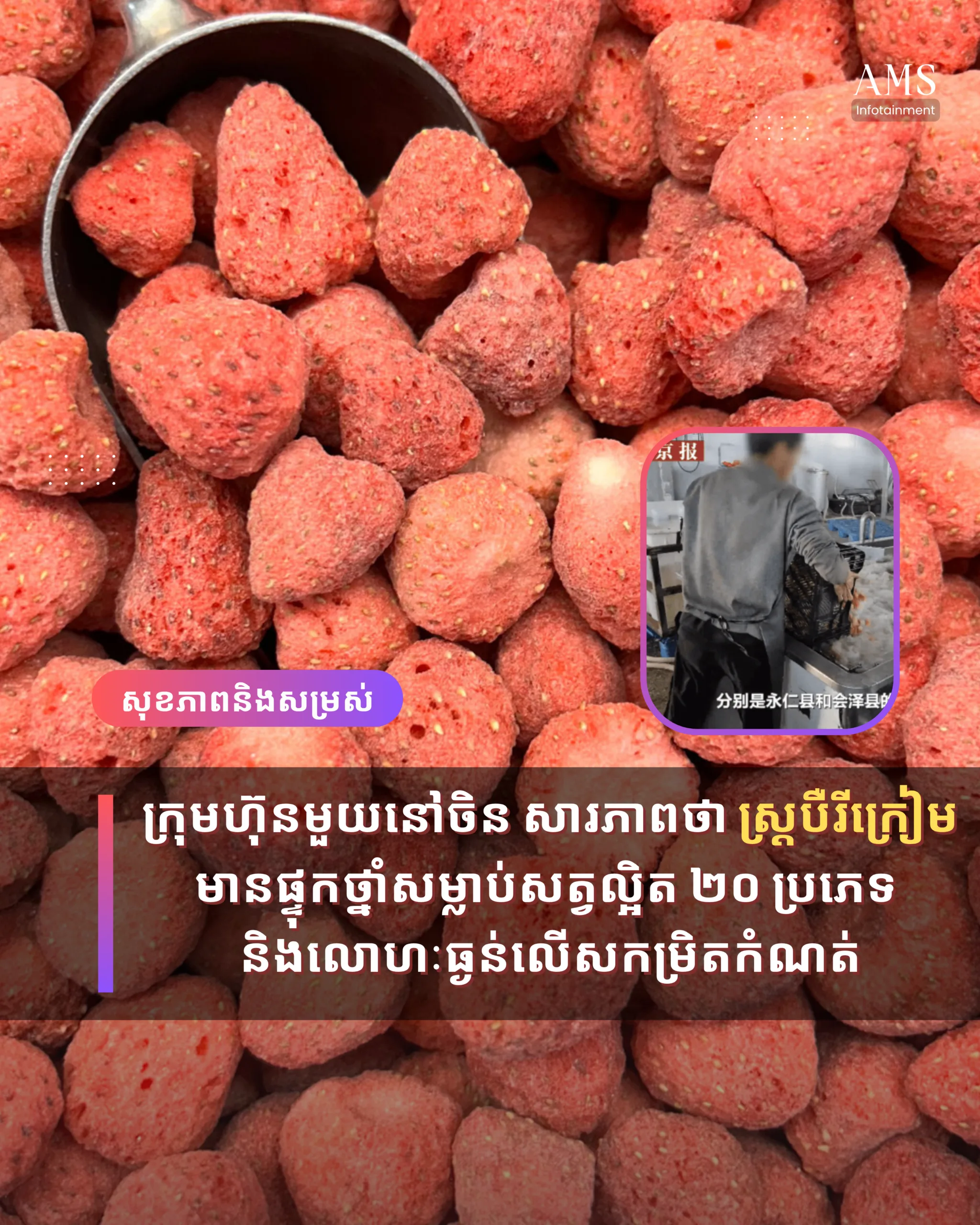 ក្រុមហ៊ុនមួយនៅចិន សារភាពថា ស្ត្របឺរីក្រៀមរបស់ខ្លួន មានផ្ទុកថ្នាំសម្លាប់សត្វល្អិត ២០ ប្រភេទ និងលោហៈធ្ងន់លើសកម្រិតកំណត់
