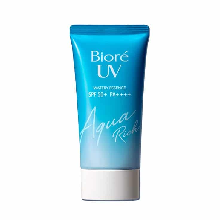 Biore UV Aqua Rich Watery Essence ជាប្រភេទ sunscreen ដែលមានសាច់ស្រាល លាបទៅមិនកកលើស្បែក និងជួយទប់ជាតិខ្លាញ់លើមុខបានយ៉ាងល្អដោយសារតែវាមានផ្ទុកនូវ Hyaluronic និង Royal Jelly Extract ក៏ដូចជាជួយទប់ទល់ការបែកញើសបានទៀតផង។