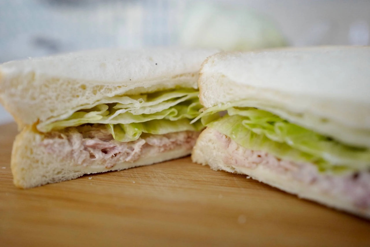 - ចុងក្រោយតម្រៀបសាឡាដក្ដោបពីលើនំប៉័ងហើយលាបសាច់ត្រីធូណាជាការស្រេច។