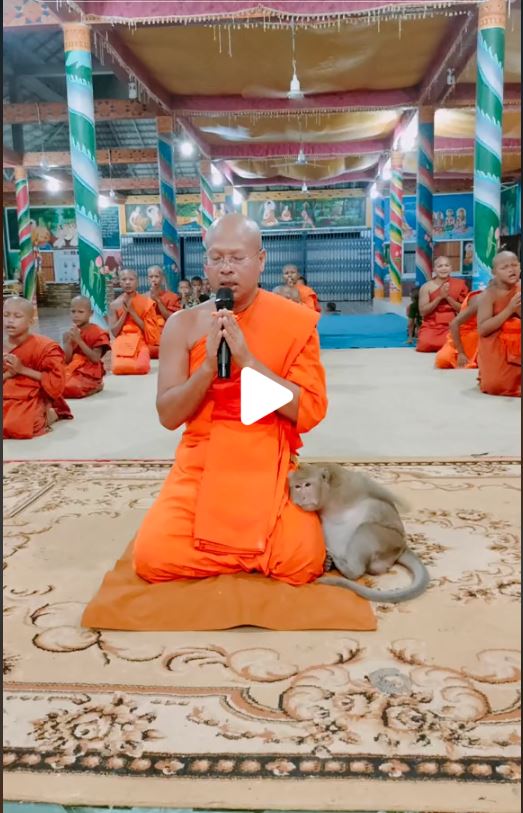 មហាជនកំពុងផ្ទុះការចាប់អារម្មណ៍ វីដេអូសត្វស្វាញីមួយក្បាលដេកលង់លក់លើភ្លៅព្រះសង្ឃមួយអង្គ ខណៈព្រះអង្គកំពុងធម្មទេសនាជាមួយនេនតូចធំជាច្រើននៅក្នុងព្រះវិហារ ដែលវីដេអូនោះក៏ត្រូវបាន Bangkok Post របស់ថៃបង្ហោះផ្សព្វផ្សាយដែរ។