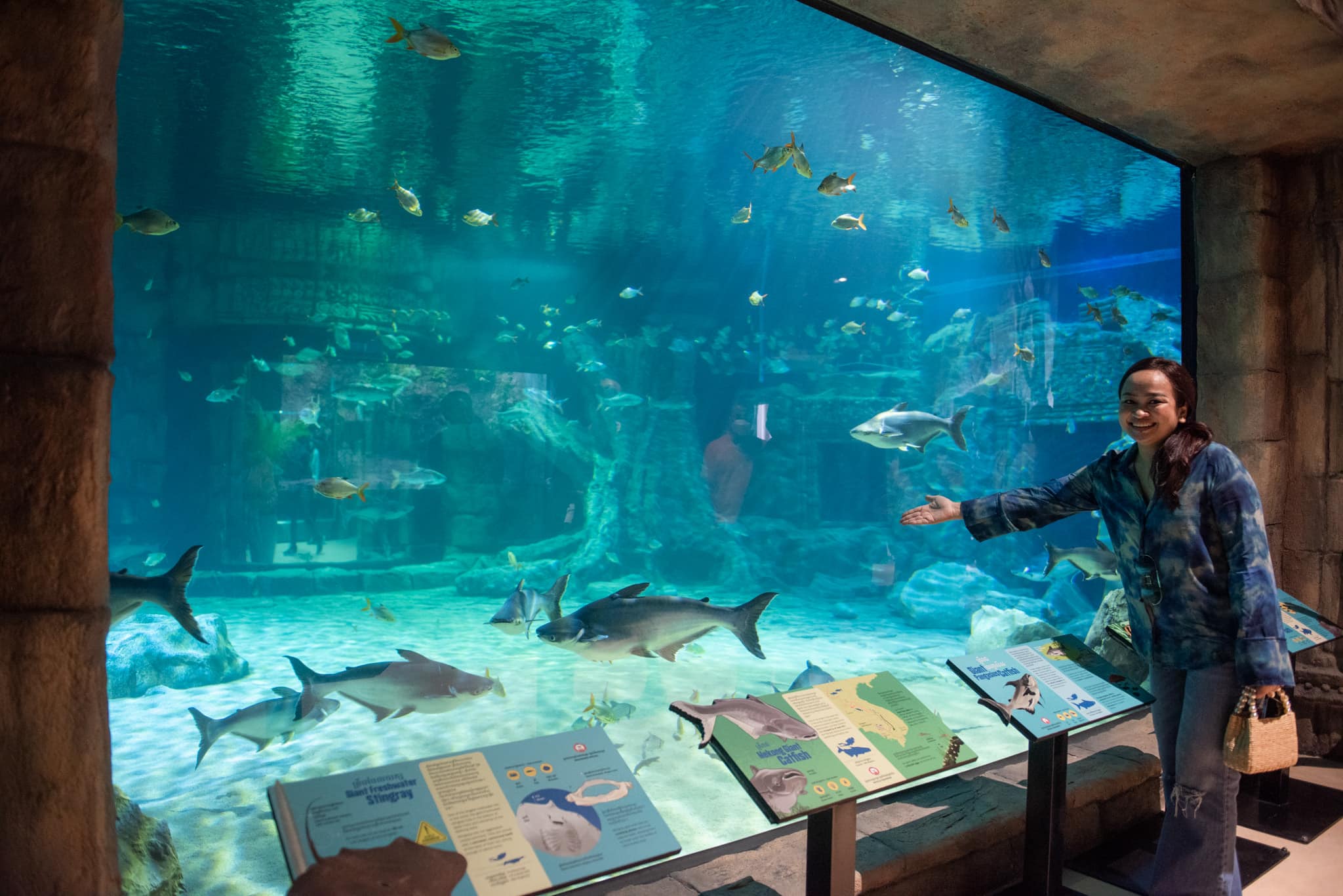 លោកជំទាវបន្តទៀតថា «ខ្ញុំបានដើរមើលនៅក្នុងឧទ្យានមួយនេះ គឺមានចំណុចពិសេសច្រើន មួយគឺខ្ញុំមិនធ្លាប់បានឃើញត្រីទឹកសាបដែលរស់នៅក្នុងទន្លេមេគង្គ ដែលមានរូបរាងប្លែកធំគឺត្រីរាជ ទម្ងន់ដល់ទៅ ១០០គីឡូជាង និងកម្របានឃើញ ទីពីរមានអ្នកជំនាញមើលថែត្រី និងអភិរក្សត្រីប្លែកៗ យ៉ាងយកចិត្តទុកដាក់។ ខ្ញុំគិតថាយើងគួរយកកូនៗមកលេងម្តង ហើយឲ្យពួកគាត់បានស្គាល់ថានេះជាត្រីកម្ររបស់ខ្មែរយើង ទីបីកន្លែងនេះនាំមកនូវការអប់រំសម្រាប់ប្រជាជនក្នុងស្រុក និងភ្ញៀវទេសចរអន្តរជាតិដែលមកទស្សនាខេត្តសៀមរាប។ បើរៀបរាប់មិនអស់ទេ ដូច្នេះសូមបងប្អូនអញ្ជើញមក ទស្សនាដោយផ្ទាល់វិញល្អជាង សូមអរគុណដល់បងប្រុស និងបងស្រី ដែលបានអញ្ជើញខ្ញុំ និងក្រុមគ្រួសារមកលេងនៅ Aquarium ហើយទទួលបានភាពកក់ក្ដៅយ៉ាងពេញលេញ »។