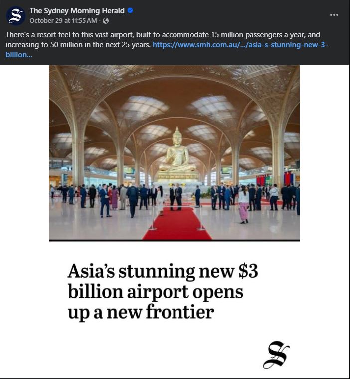 អាកាសយានដ្ឋានតេជោសន្តិភាព ត្រូវបានកាសែតអូស្ត្រាលី The Sydney Morning Herald ចុះផ្សាយ និងសរសើរពេញៗមាត់ក្រោយការបើកដំណើរការជាផ្លូវការ និងអនុញ្ញាតឱ្យភ្ញៀវជាតិ-អន្តរជាតិប្រើប្រាស់សម្រាប់ជើងហោះហើរ។