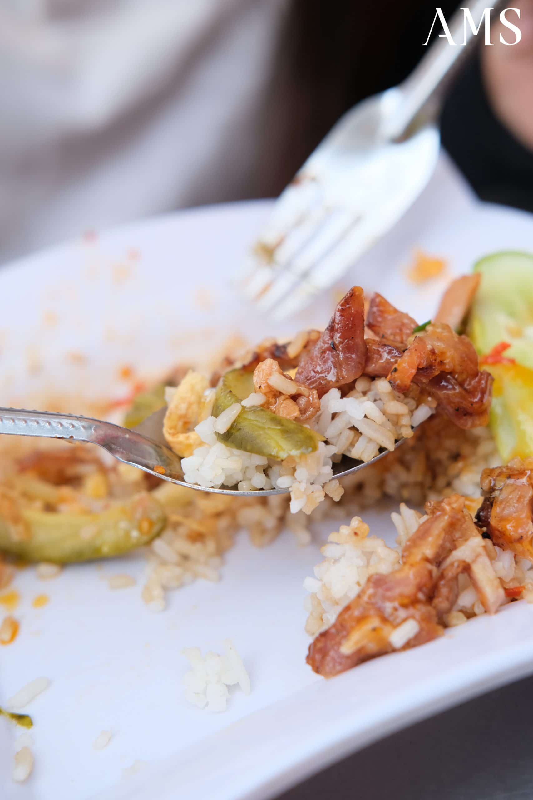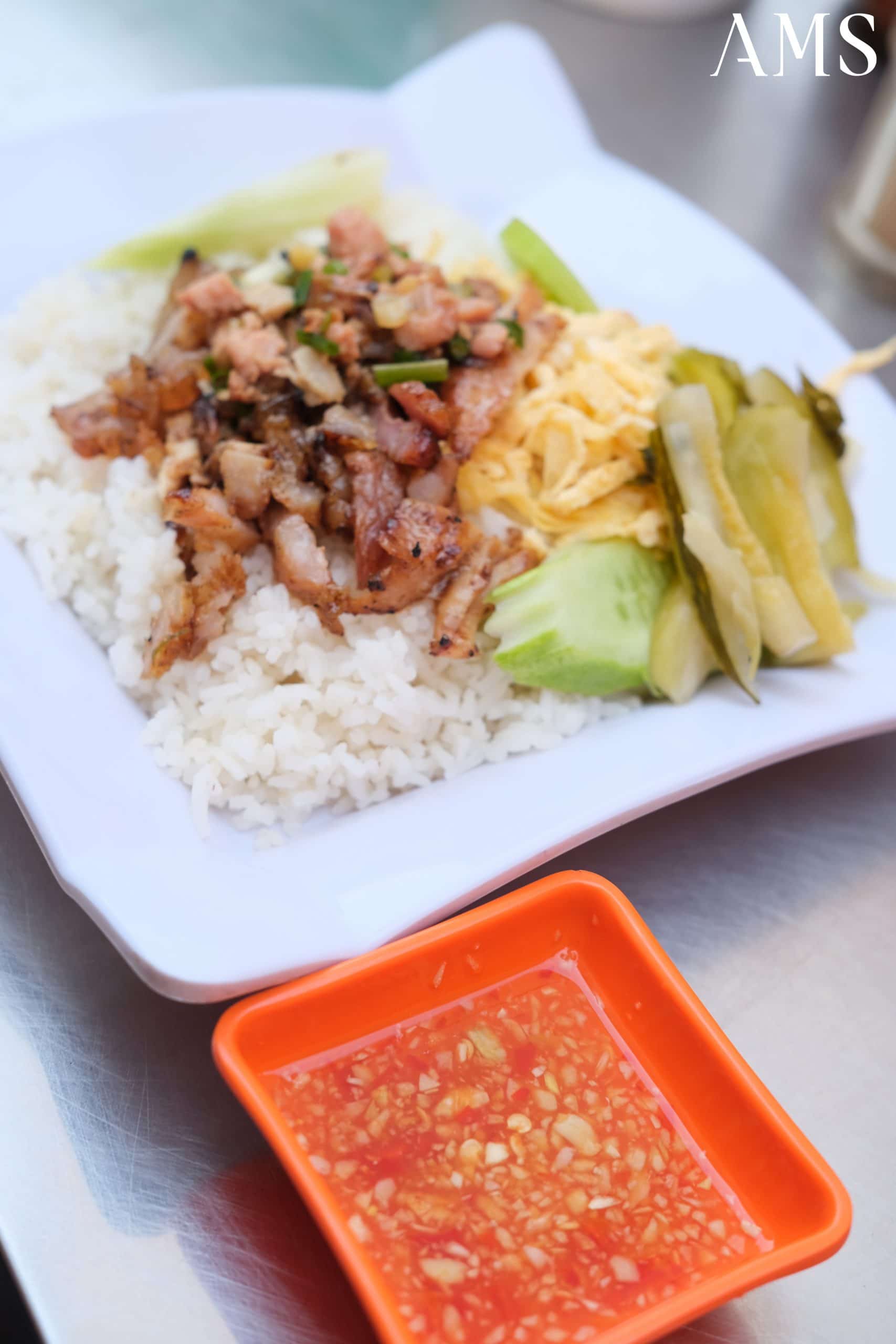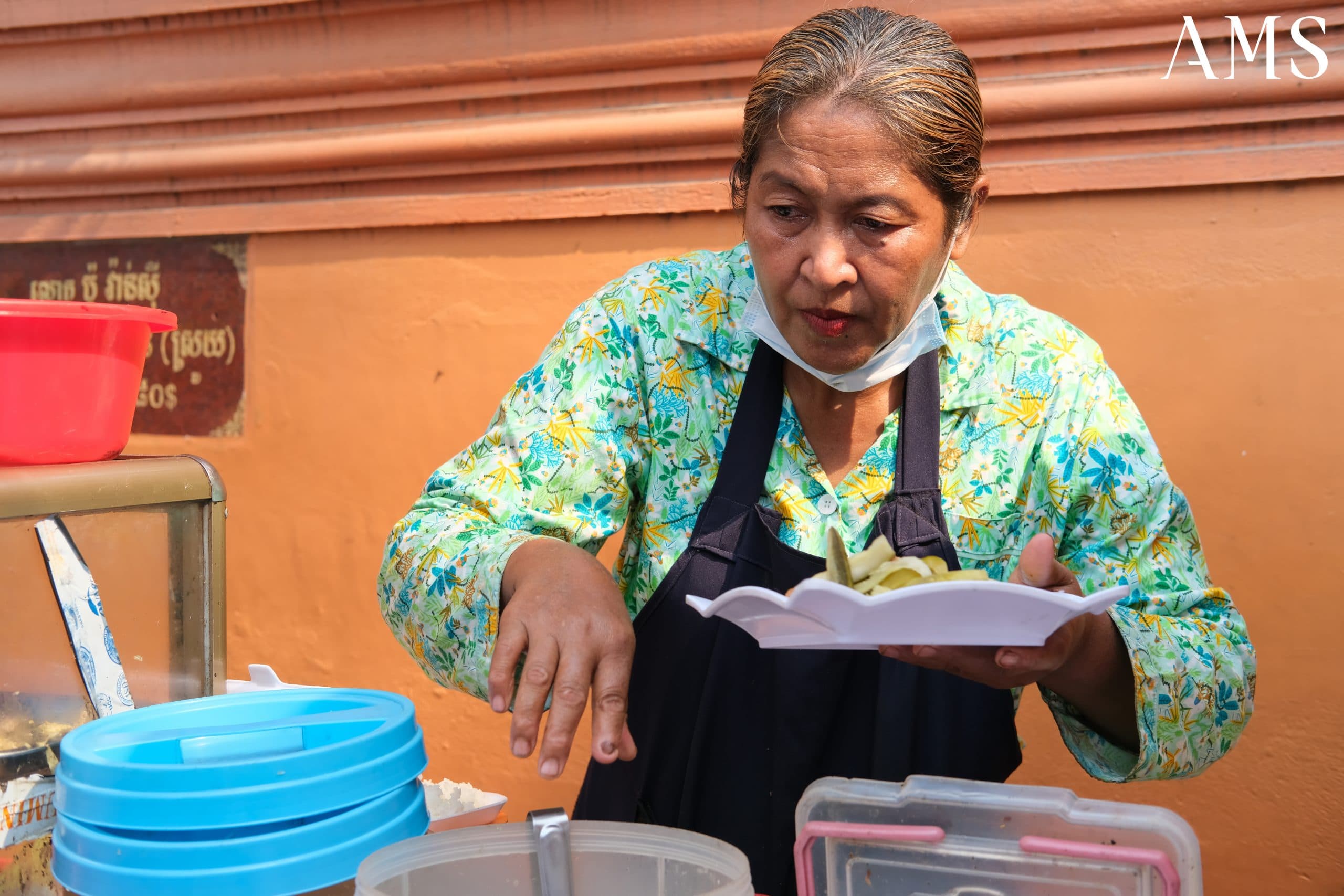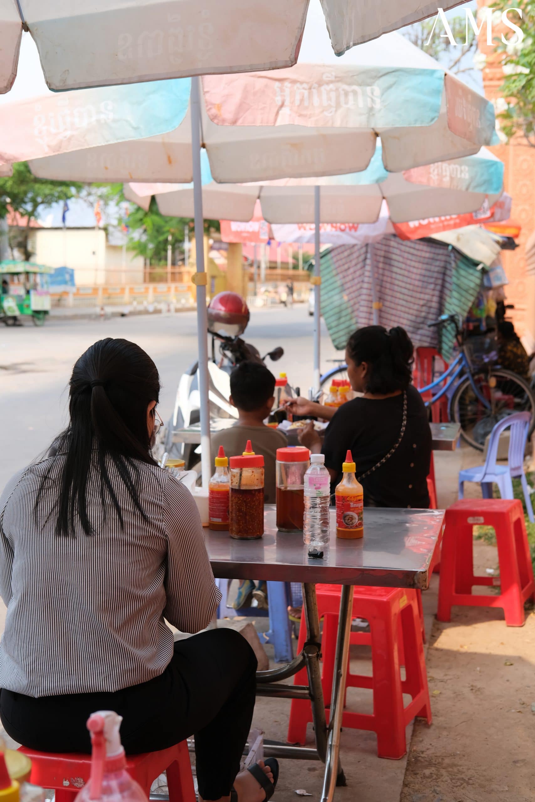 អ្វីដែលប្លែកពីគេនោះ គឺមានជ្រក់ត្រសក់ធ្វើផ្ទាល់ដៃអមក្នុងចានទៀត…ធ្វើឱ្យរសជាតិរឹតតែពិសេស! ពេលថែមទឹកម្ទេស ឬម្ទេសហុយតិចៗពីលើ ហើយច្របល់ចូលគ្នា រួចដួសមួយម៉ាត់ៗដាក់ចូលមាត់ទៅ មានអារម្មណ៍ថាមានច្រើនរសជាតិរួមបញ្ចូលគ្នា។