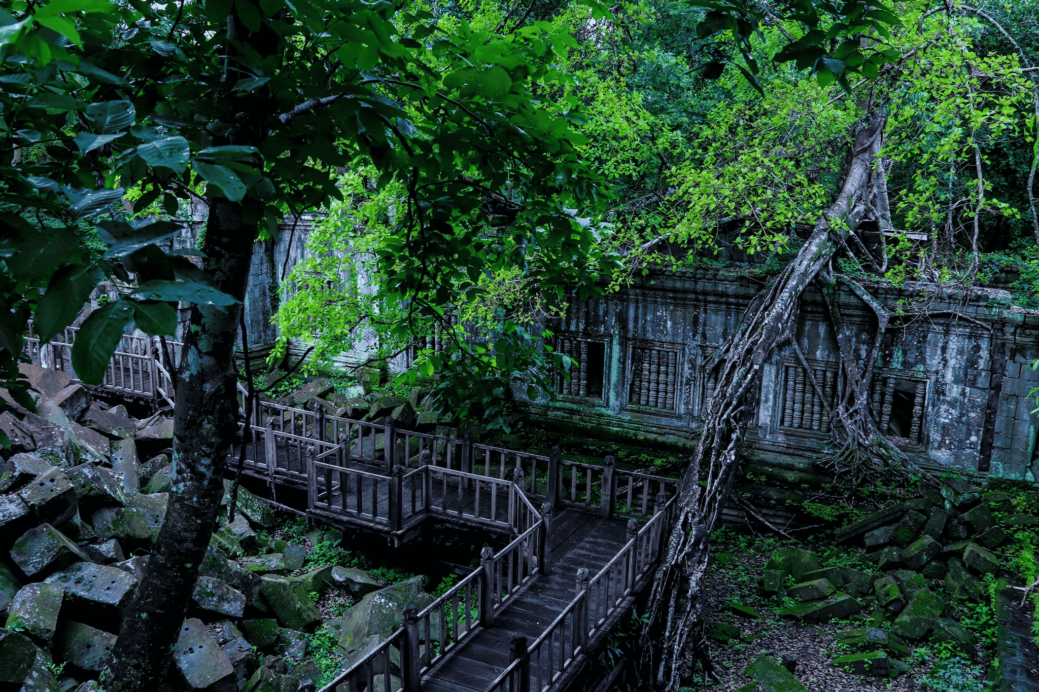 ជាប្រាសាទសំណង់ថ្មបែកបាក់ធ្លាក់គរលើគ្នាលាយឡំជាមួយរុក្ខជាតិបៃតងស្រោមជុំវិញ អមជាមួយស្មានឈើដើរឆ្លង បង្កើតបានជាទស្សនីយភាពដ៏ល្អឯកគយគន់មិនជិនណាយ។ ប្រាសាទបេងមាលាសាងឡើងថ្មភក់ និងថ្មបាយក្រៀម នៅសតវត្សរ៍ទី១២ តាមរចនាប័ទ្មអង្គរវត្ត សង់លើផ្ទៃដីរាបស្មើទំហំ១៤ហិកតា (១៨១ម៉ែត្រx១៥២ម៉ែត្រ) មានកំពែង៣ជាន់ ដើម្បីឧទ្ទិសថ្វាយដល់ព្រះអាទិទេពក្នុងព្រហ្មញ្ញសាសនា និកាយវិស្ណុនិយម។