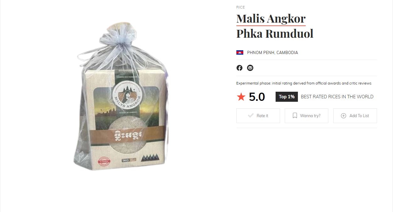 តាមការចេញផ្សាយនៅលើគេហទំព័រ TasteAtlas នាថ្ងៃទី ១២ ខែ មិថុនា ឆ្នាំ ២០២៥ នេះបានឱ្យដឹងថាស្លាកយីហោ ម្លិះអង្គរ ត្រូវបានចាត់ចូលជាប្រភេទអង្ករល្អដាច់គេនៅលើពិភពលោក។ ក្នុងចំណោមប្រភេទអង្ករដែលផលិតបានល្អបំផុតទាំង២៥ មកពីជុំវិញពិភពលោកមានតែ ១០ ប្រភេទនៃស្លាកយីហោប៉ុណ្ណោះត្រូវបានចាត់ចូលទៅក្នុងកំពូលទាំង ១០ ដោយក្នុងនោះពូជអង្ករ «ផ្ការំដួល» នៃស្លាកយីហោ ម្លិះអង្គរ របស់កម្ពុជាបានឈរនៅលំដាប់លេខរៀងទី១ ដោយវ៉ាដាច់ប្រភេទអង្ករដែលមកពីប្រទេសវៀតណាម, ថៃ និង អ៊ីតាលី។
