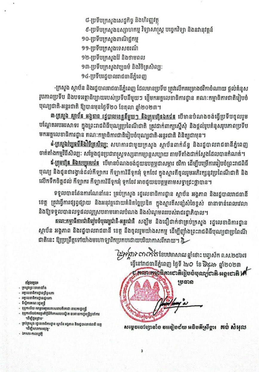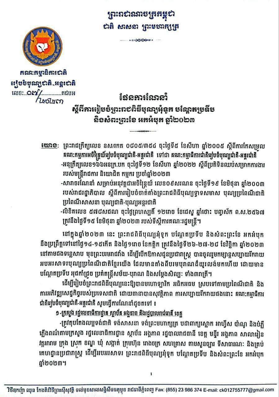 សូមអានផែនការណែនាំលម្អិតរបស់គណៈកម្មធិការជាតិ រៀបចំបុណ្យជាតិ-អន្តរជាតិ ខាងក្រោមនេះ៖