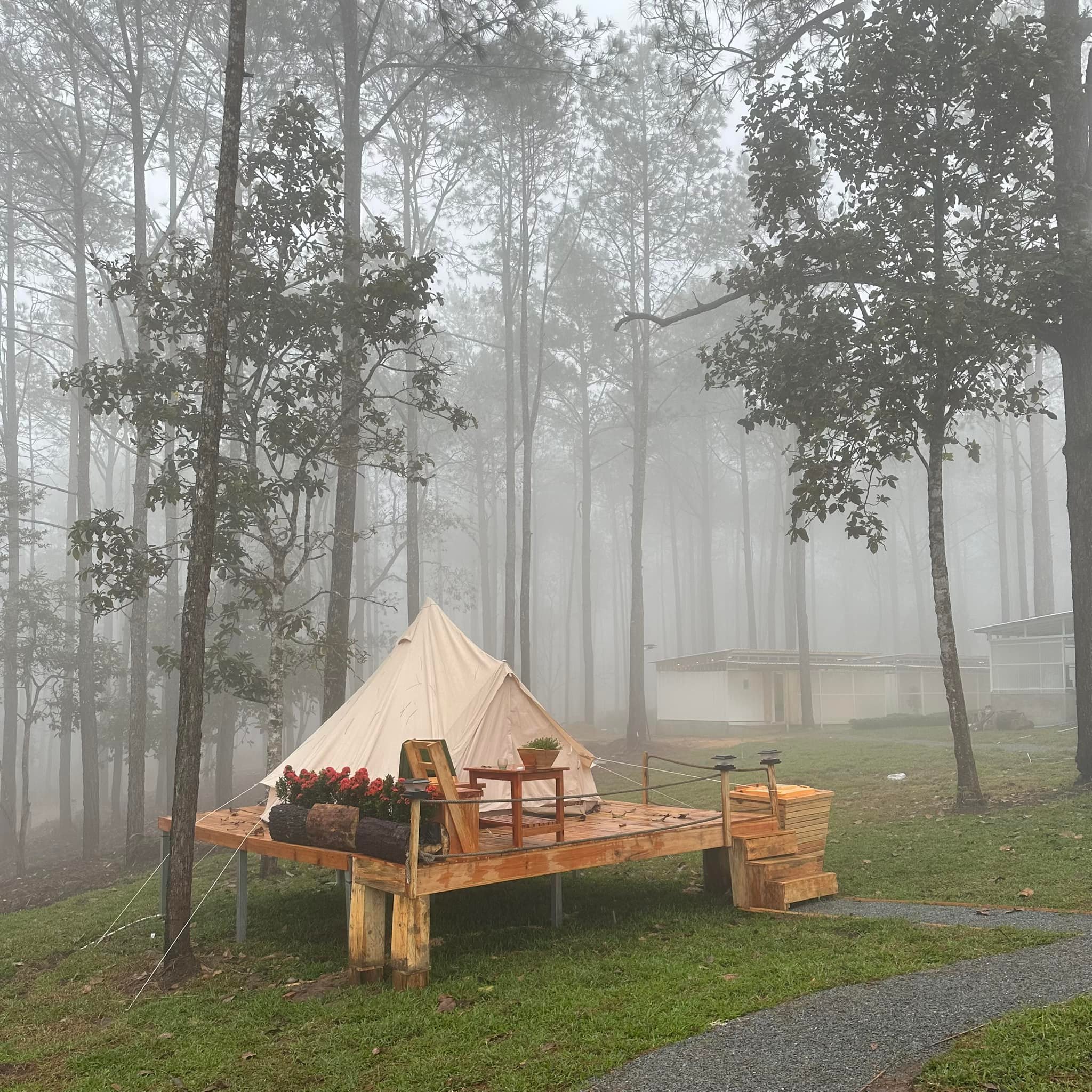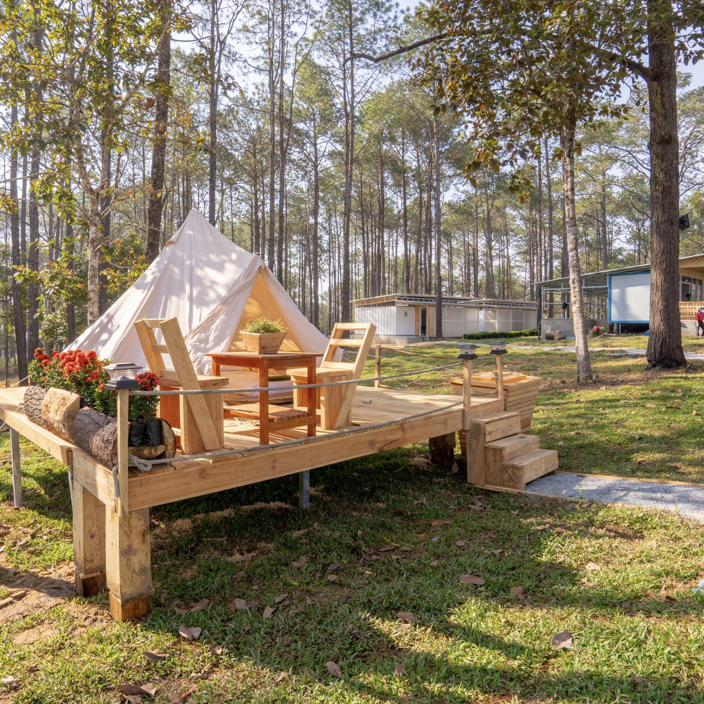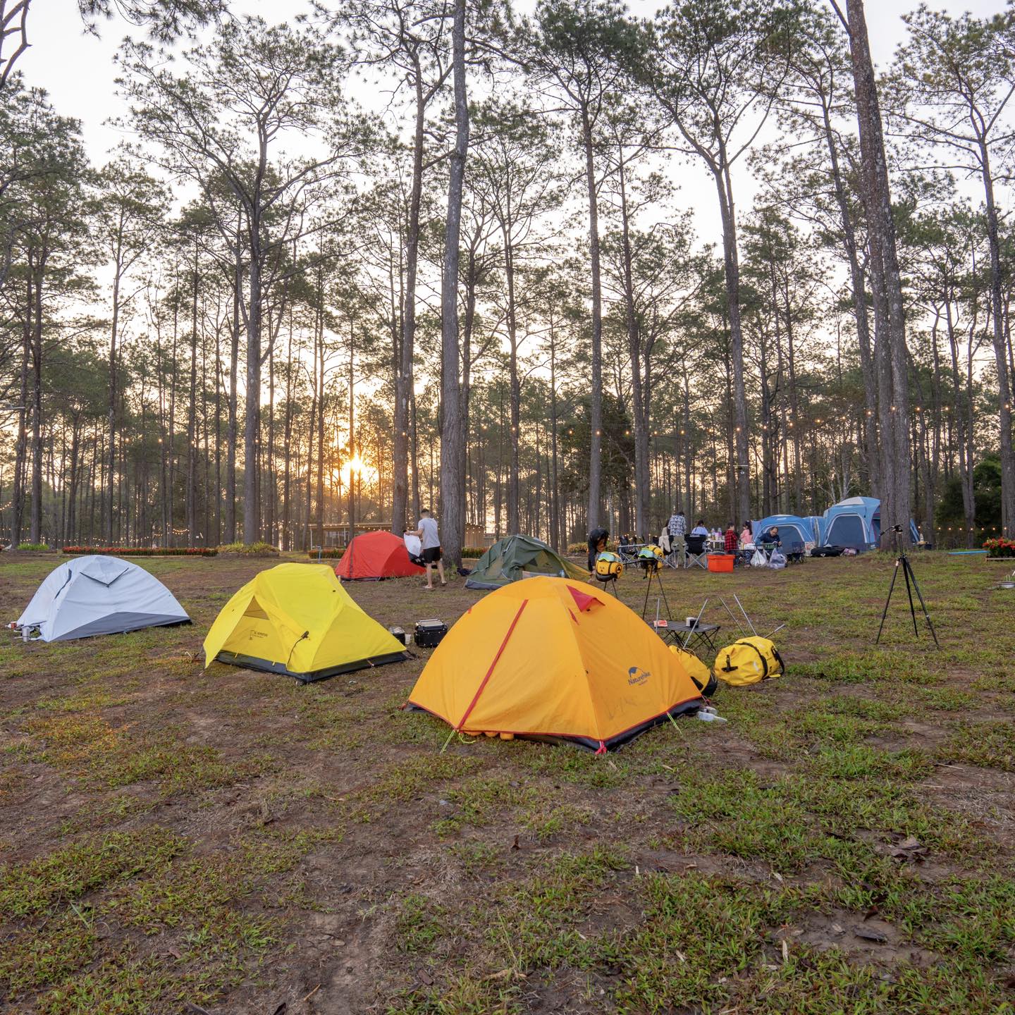 នៅលើឧទ្យានបោះតង់មួយនេះ អ្នកទេសចរអាចសម្រាកលំហែយ៉ាងមានក្ដីសុខជាមួយបរិយាកាសធម្មជាតិ កន្លែងគេង private ដែលរៀបចំដាច់ដោយឡែកពីគ្នា ឬអាចបោះតង់ជាក្រុម ហើយចំណាយពេលវេលាសប្បាយជាមួយគ្នាក្នុងឧទ្យានដ៏ស្រស់ស្អាតមួយនេះបានយ៉ាងរីករាយ។ នាពេលព្រឹក អ្នកទេសចរនឹងបានរីករាយជាមួយបរិយាកាសចុះអាប់ដែលមានទឹកសន្សើមធ្លាក់ត្រជាក់ស្រឹប ជួយបង្កើតបរិយាកាសលំហែរបស់ភ្ញៀវទេសចរឲ្យកាន់តែមានភាពរ៉ូមិនទិច។ ពេលនោះហើយ គឺជាពេលដែលអ្នកទេសចរមានឱកាសនៅក្នុងការផ្ដិតយករូបភាពជាច្រើន និងស្របពេលជាមួយគ្នានោះព្រះអាទិត្យក៏ចាប់ផ្ដើមបញ្ចេញពន្លឺពណ៌មាស​ចាំង​មក​ប៉ះ ស្បែក ជួយដាស់ស្មារតីអ្នកទេសចរទាំងឡាយឲ្យស្រស់ស្រាយ និងរំសាយពីទុក្ខកង្វល់នានា។