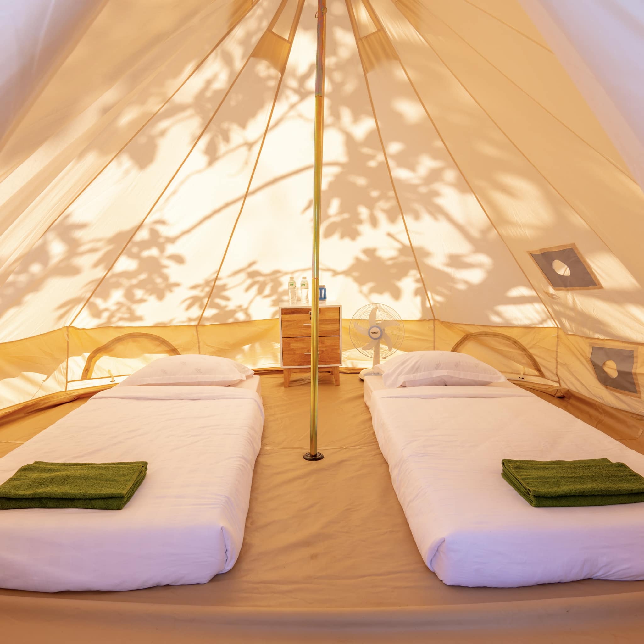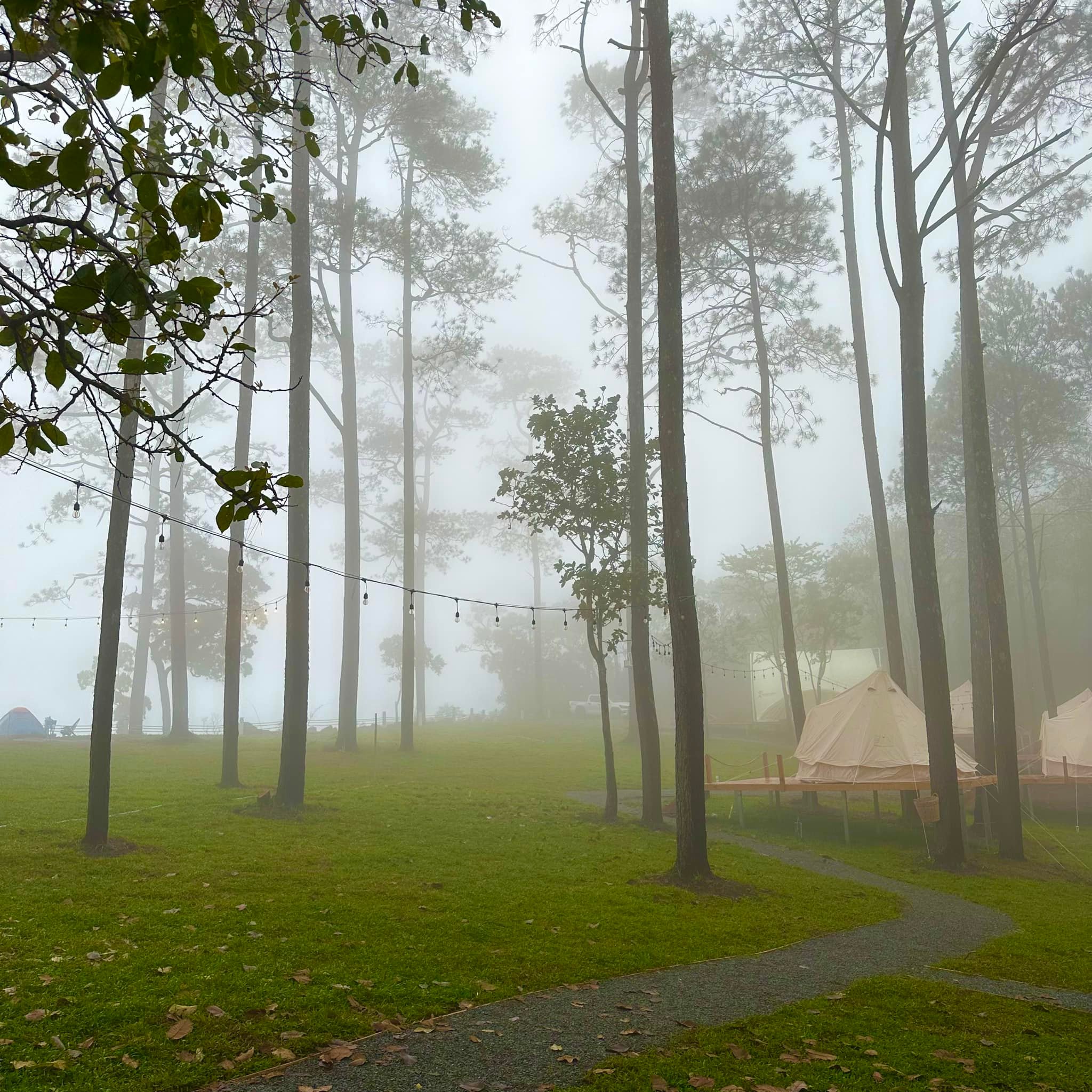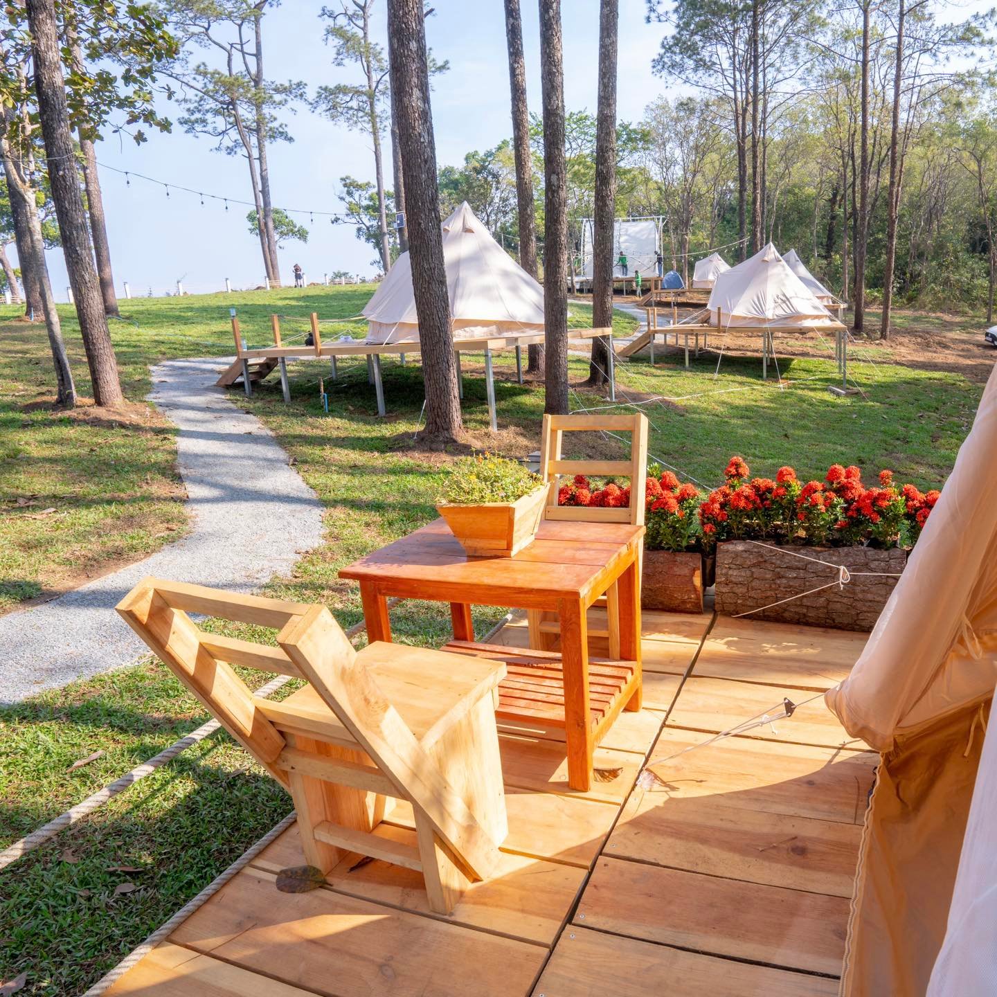 នៅលើឧទ្យានបោះតង់មួយនេះ អ្នកទេសចរអាចសម្រាកលំហែយ៉ាងមានក្ដីសុខជាមួយបរិយាកាសធម្មជាតិ កន្លែងគេង private ដែលរៀបចំដាច់ដោយឡែកពីគ្នា ឬអាចបោះតង់ជាក្រុម ហើយចំណាយពេលវេលាសប្បាយជាមួយគ្នាក្នុងឧទ្យានដ៏ស្រស់ស្អាតមួយនេះបានយ៉ាងរីករាយ។ នាពេលព្រឹក អ្នកទេសចរនឹងបានរីករាយជាមួយបរិយាកាសចុះអាប់ដែលមានទឹកសន្សើមធ្លាក់ត្រជាក់ស្រឹប ជួយបង្កើតបរិយាកាសលំហែរបស់ភ្ញៀវទេសចរឲ្យកាន់តែមានភាពរ៉ូមិនទិច។ ពេលនោះហើយ គឺជាពេលដែលអ្នកទេសចរមានឱកាសនៅក្នុងការផ្ដិតយករូបភាពជាច្រើន និងស្របពេលជាមួយគ្នានោះព្រះអាទិត្យក៏ចាប់ផ្ដើមបញ្ចេញពន្លឺពណ៌មាស​ចាំង​មក​ប៉ះ ស្បែក ជួយដាស់ស្មារតីអ្នកទេសចរទាំងឡាយឲ្យស្រស់ស្រាយ និងរំសាយពីទុក្ខកង្វល់នានា។