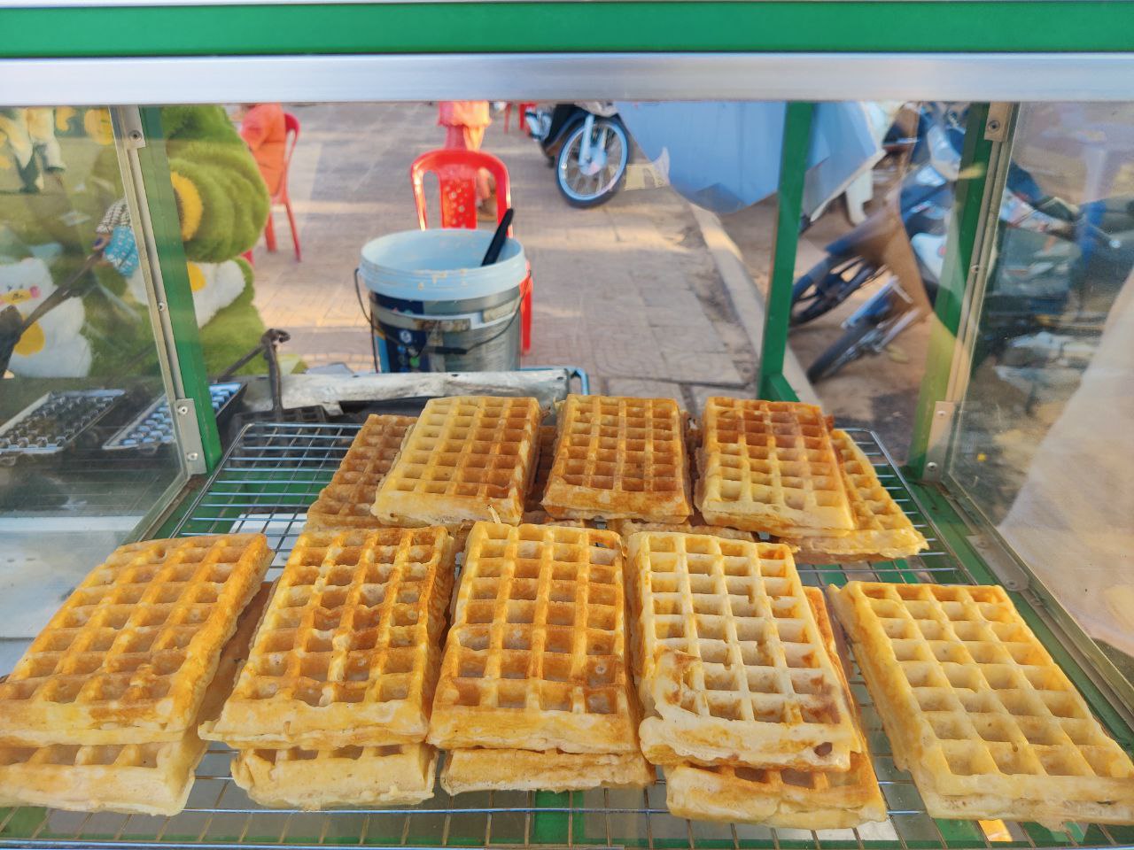 នំពុម្ពខ្មែរយើងហ្នឹង! អ្នកលក់គាត់អង្គុយចាក់នំនៅហ្នឹងដែរ អញ្ចឹងហើយ អាចញ៉ាំពេលក្តៅៗ សាច់ទន់ៗ ក្លិនឈ្ងុយៗបាន។