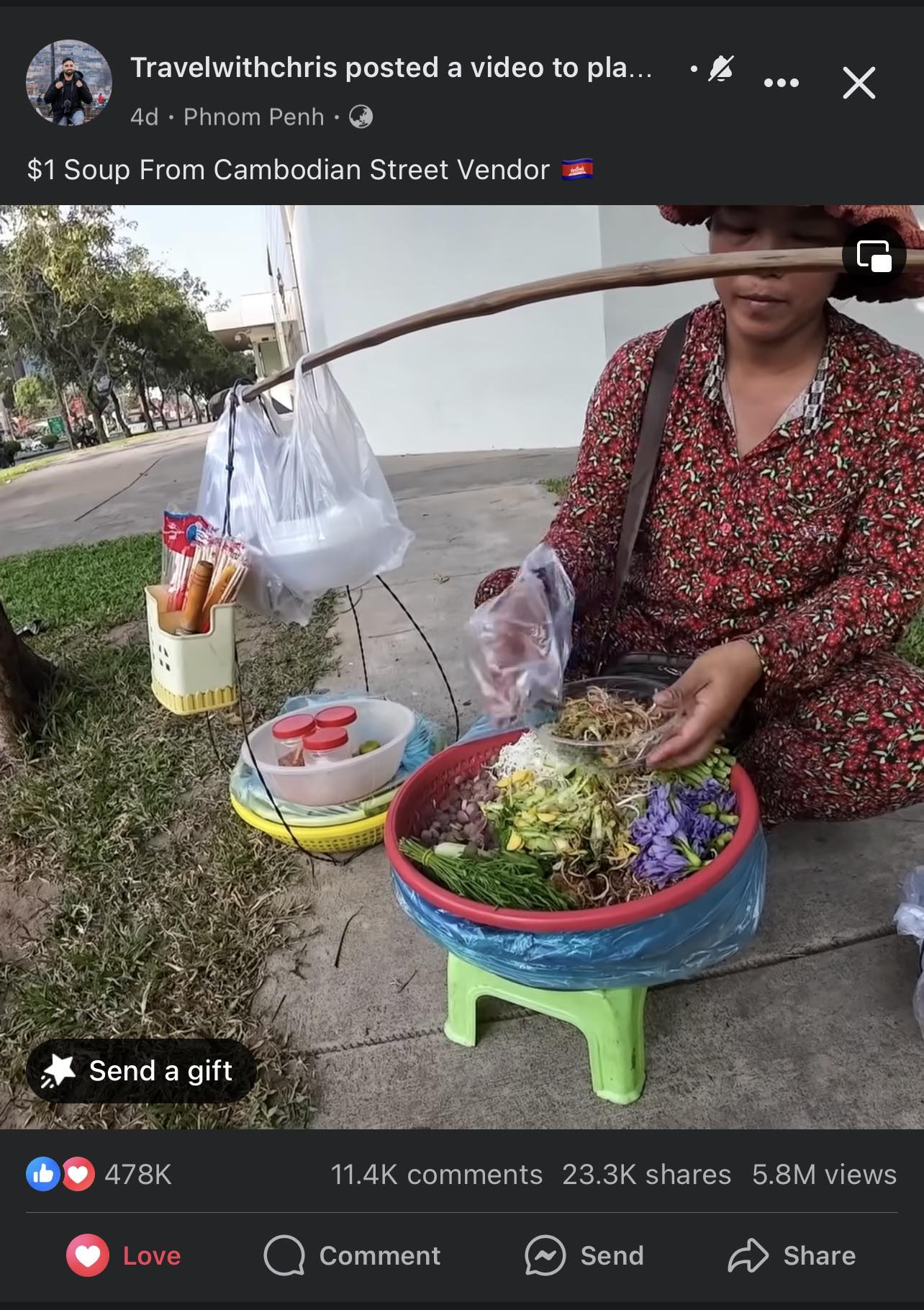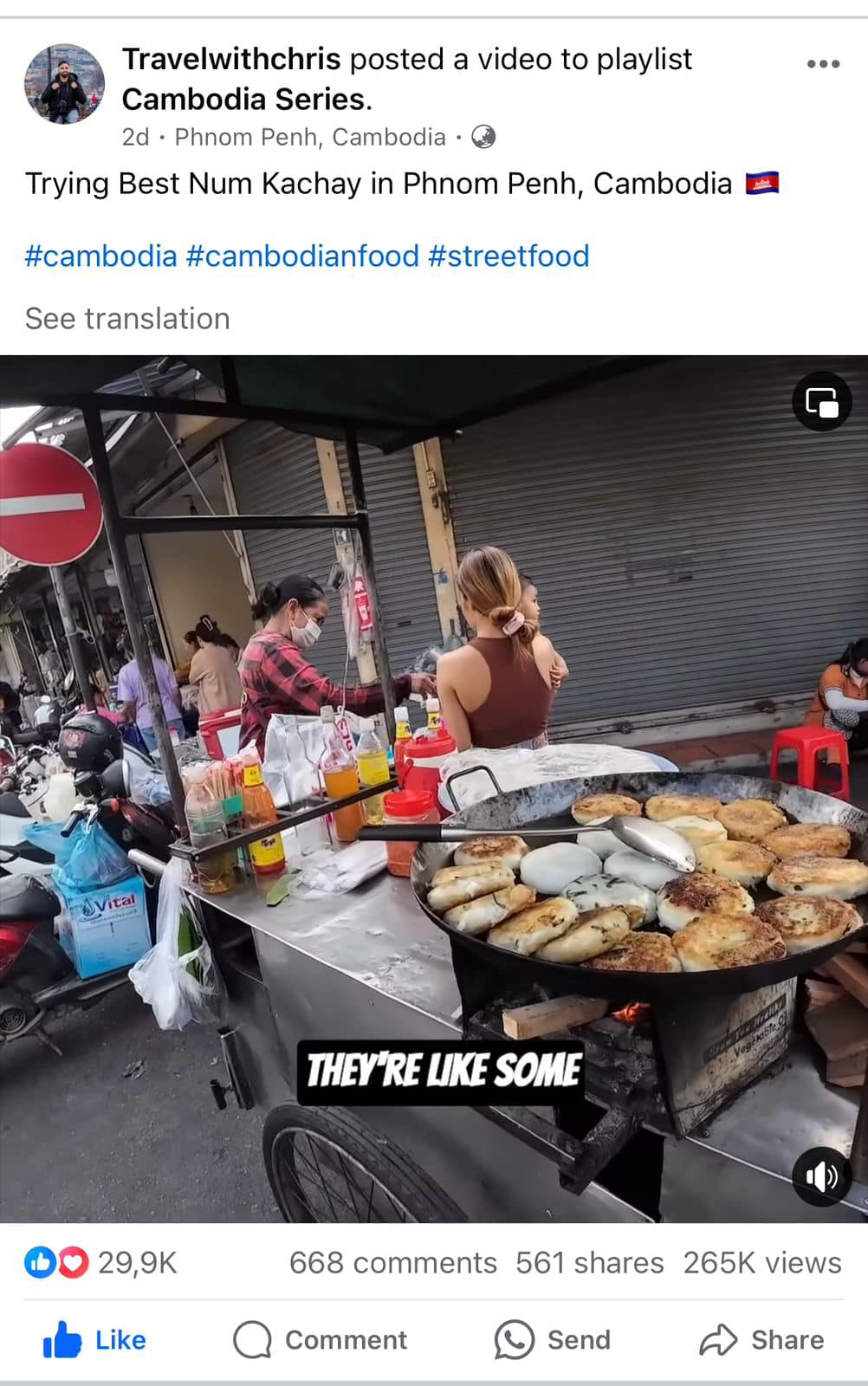 Travelwithcris ជា​ផេក​របស់​ Youtuber ជន​ជាតិ​អាមេរិក​ម្នាក់​ដែល​ប្រមូល​ផ្ដុំ​ទៅ​ដោយ​មាតិកា​ជា​ច្រើនផ្សេងគ្នាទៅ​តាម​​ប្រទេស​ដែល​គាត់​បាន​ទៅ​ដល់។​ ជាក់​ស្ដែង Cris បាន​ចំណាយ​ពេល​ច្រើន​ថ្ងៃ​នៅ​កម្ពុជា​ ក្នុង​ទី​ក្រុង​ភ្នំពេញ​ ថែម​ទាំង​បាន​ជួយ​ផ្សព្វផ្សាយ​អ្វី​ដែល​ល្អ​ៗ​របស់​កម្ពុជា​​​​ឱ្យ​ពិភពលោក​បាន​ស្គាល់​ថែម​ទៀត​ផង​។​ ជា​ការ​ពិត​ Cris បាន​ធ្វើ​វីដេអូ​ផ្សព្វ​ផ្សាយ​​អាហារ​តាម​ផ្លូវ​របស់​​កម្ពុជា​ជា​ច្រើន​ដូច​ជា​​ នំបញ្ចុក​រែក​លក់​នៅ​តាម​ផ្លូវ,​ ចេក​ចៀន​តាម​រទេះ, ​ភេសជ្ជៈ​ដែល​លក់​នៅ​តាម​ដង​ផ្លូវ និង​អាហារ​តាម​ផ្លូវ​ជា​ច្រើន​ទៀត​ រួម​ទាំង​វត្ថុ​អនុស្សាវរីយ៍​នៅ​តាម​ផ្សារ​ក្នុង​ក្រុង​ភ្នំពេញ​ ដែល​ធ្វើ​ឱ្យ​វីដេអូ​របស់​លោក​ទទួល​បាន​ការ​ចាប់​អារម្មណ៍​ជា​ខ្លាំង​ ថែម​ទាំង​ទទួល​បាន​ការ​កោត​សរសើរ​ពី​សំណាក់​ប្រជាជន​កម្ពុជា​ផង​ដែរ​។​ លើស​ពី​នេះ​ទៅ​ទៀត​ អាជីវករ​ដែល​បាន​ជួប​ Cris តែង​បង្ហាញ​ស្នាម​ញញឹម​ និង​ភាព​រីក​រាយ​ ក្រោយ​ពី​បាន​និយាយ​លេង​ជាមួយ​គាត់ ​​ដែល​នេះ​បង្ហាញ​​ពី​ការ​ស្វាគមន៍​របស់​ប្រជាជន​កម្ពុជា​ទៅ​កាន់​ជន​បរទេស​ដែល​មក​លេង​កម្សាន្ត​ក្នុង​ស្រុក​ខ្មែរ​។