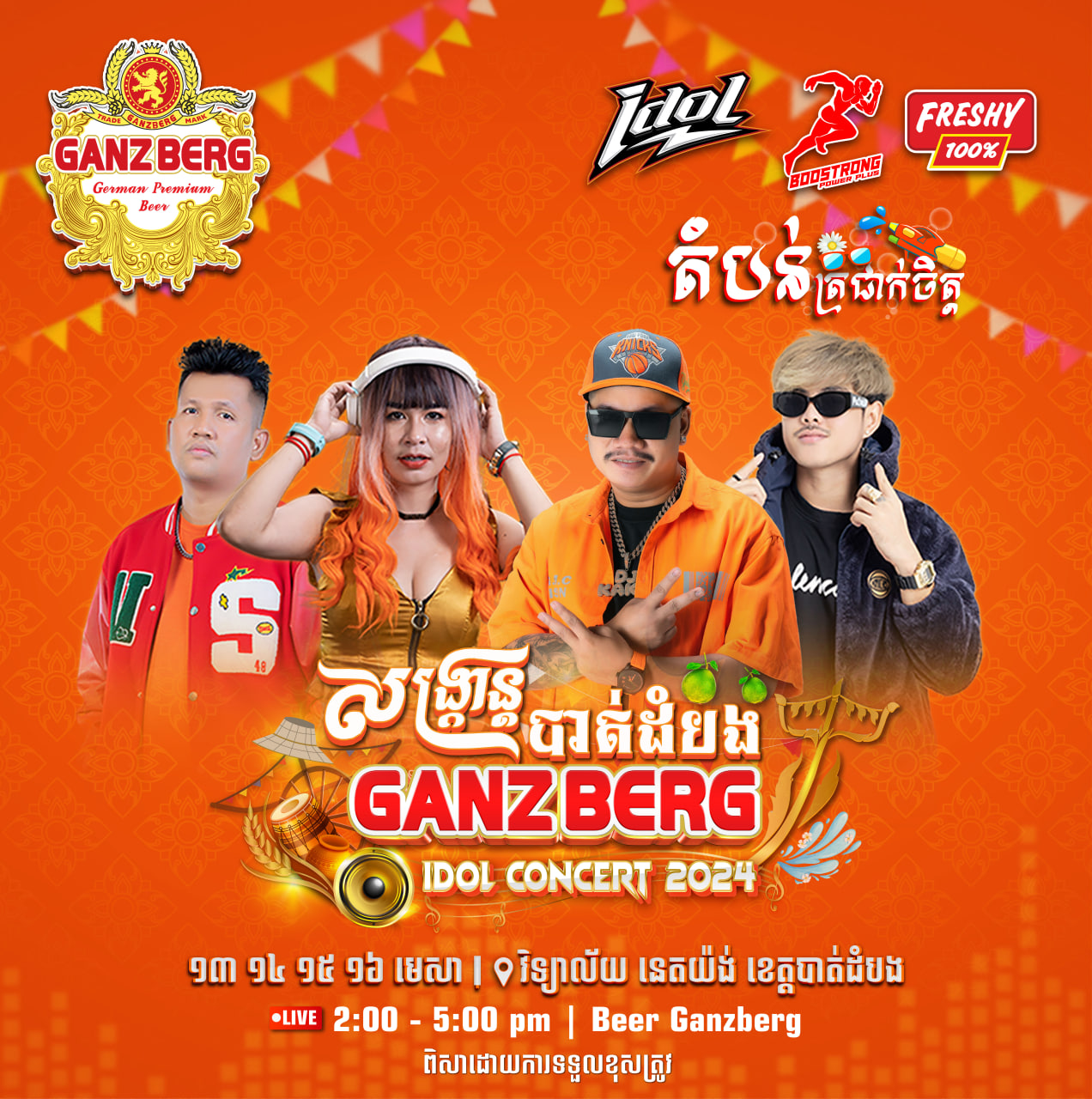 នេះជាមហាព្រឹត្តិការណ៍ដ៏ធំអស្ចារ្យដែលពុកម៉ែបងប្អូនទន្ទឹមរង់ចាំនូវផ្ទាំងទស្សនីយភាពសំបូរបែប ហើយក៏មានការតាំងពិព័រណ៍ម្ហូបអាហារ និងទំទិញជាតិ អន្តរជាតិគ្រប់ប្រភេទផងដែរ អ្វីដែលរឹតតែអស្ចារ្យនោះក៏មានកម្មវិធីលេងល្បែងប្រជាប្រិយគ្រប់ទម្រង់ ជាពិសេសរាំលេងកម្សាន្តនៅតំបន់ត្រជាក់ចិត្តផងដែរ។ តស់! នៅចាំអីទៀតណាត់សក់វែង សក់ខ្លី ពួកម៉ាកល្អ ធីមបងប្អូនល្អ កាន់ដៃគ្នា ចូលរួមឱ្យបានច្រើនកុះករ ក្នុងកម្មវិធី GANZBERG សង្រ្កាន្តឆ្នាំថ្មី 2024 ទាំងអស់គ្នា។ គួបញ្ជាក់ផងដែរថា GANZBERG សង្រ្កាន្តឆ្នាំថ្មី 2024 និងមានការផ្សាយផ្ទាល់តាមរយៈស្ថានីយ៍ទូរទស្សន៍ ហង្សមាស HDTV,BTV,PNN និង Facebook Page Beer GANZBERG៕