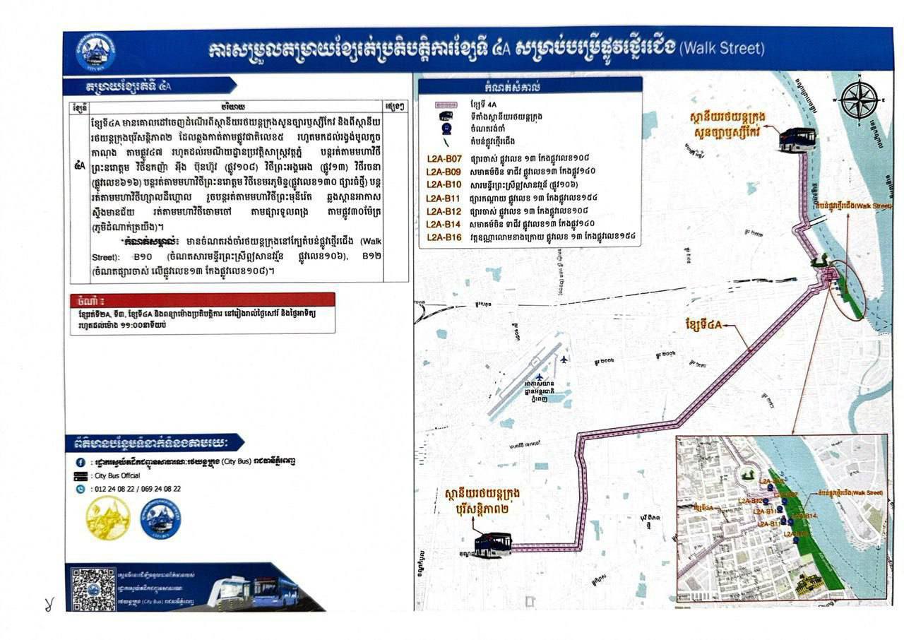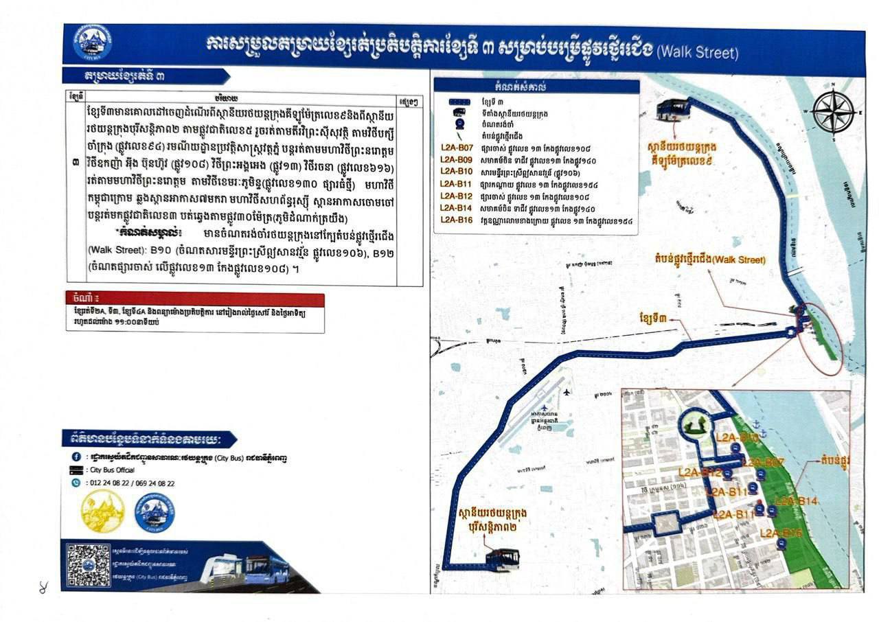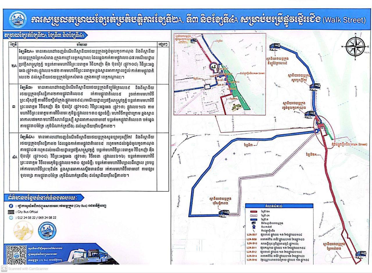 រថយន្តក្រុងសាធារណៈ ៤ ខ្សែបានដាក់ឱ្យដំណើរការសម្រាប់បងប្អូនប្រជាពលរដ្ឋទៅកាន់តំបន់ Walk Street ហើយ។ នេះបើតាមការជូនដំណឹងលើផេកផ្លូវការរដ្ឋាករស្វយ័តដឹកជញ្ជូនសាធារណៈរថយន្តក្រុង City Bus រាជធានីភ្នំពេញកាលពីថ្ងៃទី១១ ខែ មិថុនា ឆ្នាំ ២០២៥។