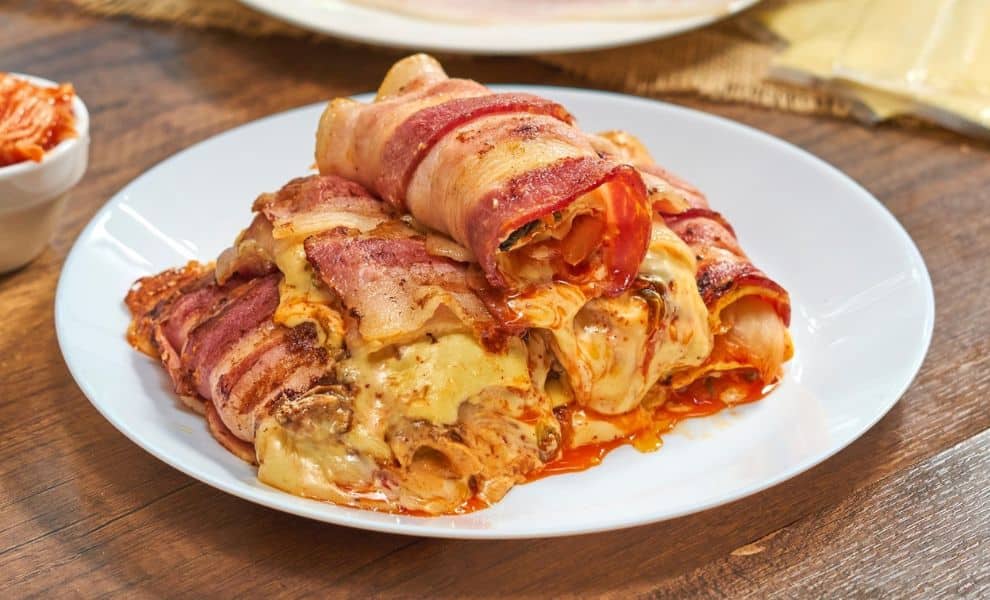 របៀបធ្វើសាច់បេកខនរុំជាមួយគីមឈី និងឈីស