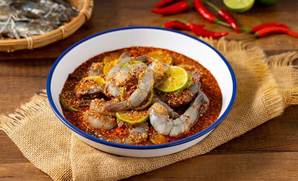 - ដំបូងបកបង្គា និងឆ្កឹះសរសៃខ្នងចេញស្អាតរួចយកទៅត្រាំជាមួយទឹកសូដា។ បើបន្ថែមទឹកកកក្នុងនោះទៀតរឹតតែធ្វើឱ្យសាច់បង្គាស្រួយឆ្ងាញ់។