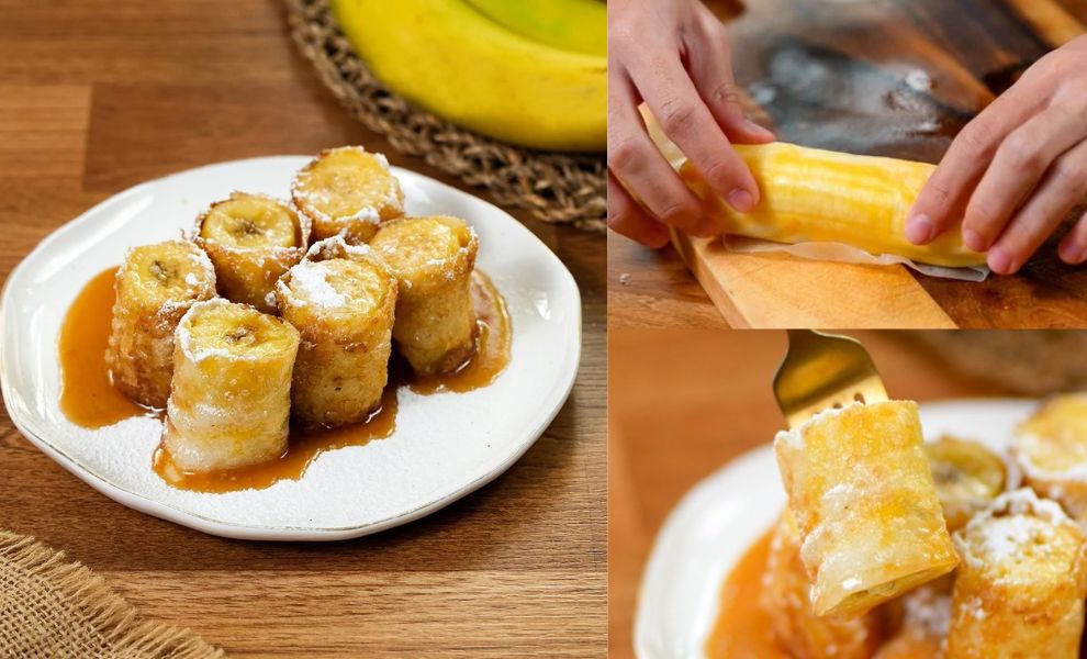 • ហើយយកទៅរុំជាមួយចេក ដោយមុនរមូលវាត្រូវលាបពងមាន់ពីលើជាមុនសិន។
