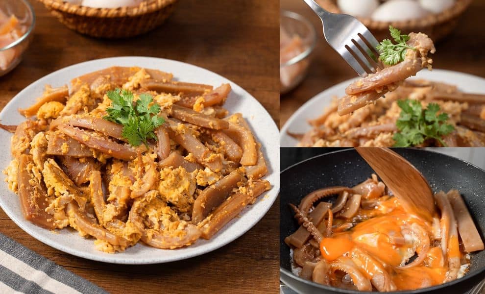 - ចុងក្រោយពេលមឹកឆ្អិនគ្រាន់តែគោះពងទាចូលហើយឆាបំបែកបន្តិចជាការស្រេច៕