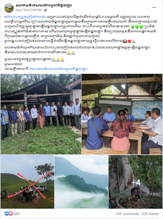 ក្នុងខ្លឹមសារបានបញ្ជាក់ថា សហគមន៍ទេសចរណ៍ធម្មជាតិខ្នងផ្សាររួមជាមួយនឹងក្រុមការងារមន្ទីរទេសចរណ៍ និងអាជ្ញាធរឃុំបានសម្រេចបិទផ្លូវ ម៉ូតូ ឡាន ឡើងខ្នងផ្សារជាផ្លូវការហើយ ដោយអនុញ្ញាតតែទេសចរថ្មើរជើងតែប៉ុណ្ណោះ។