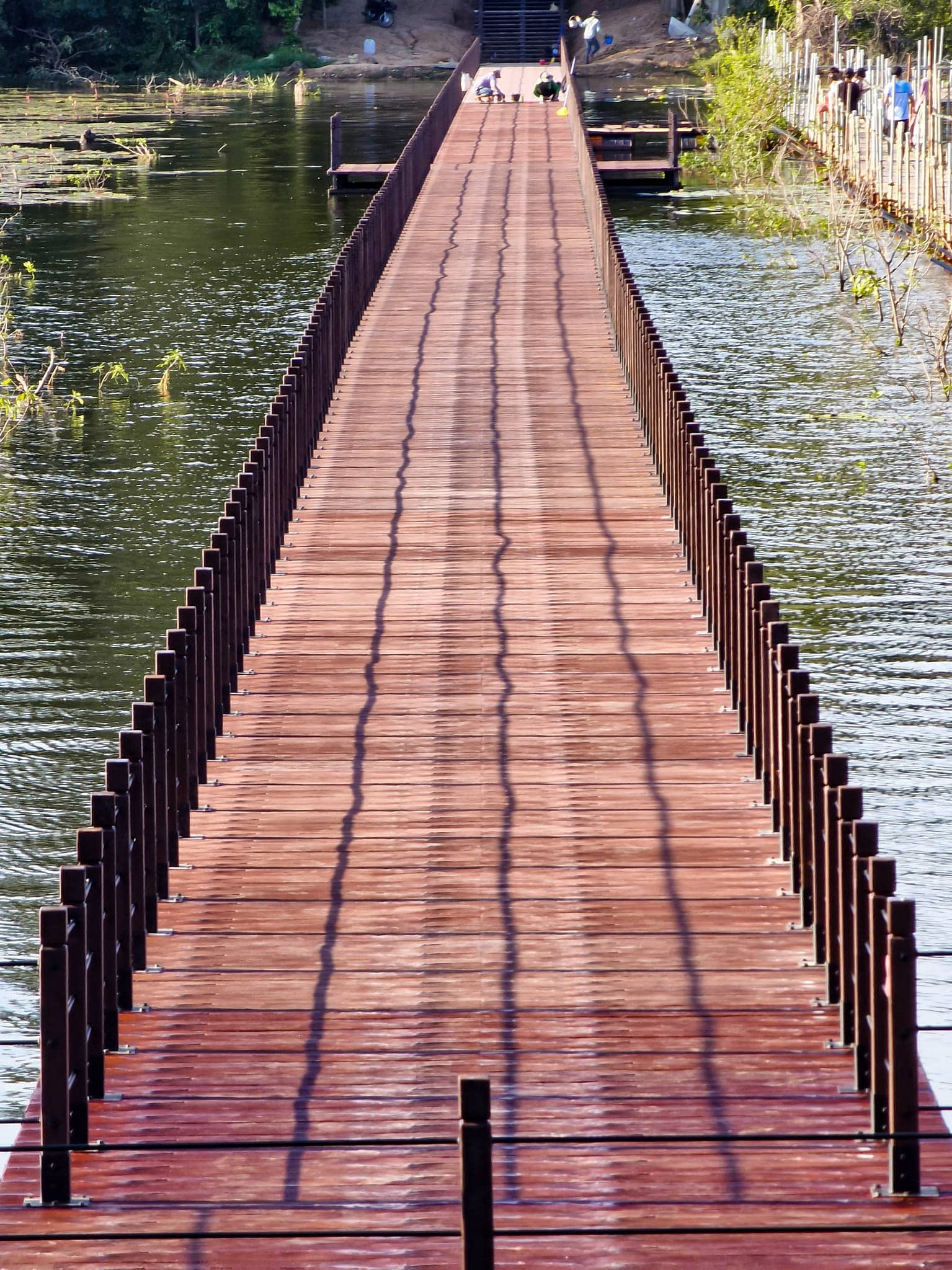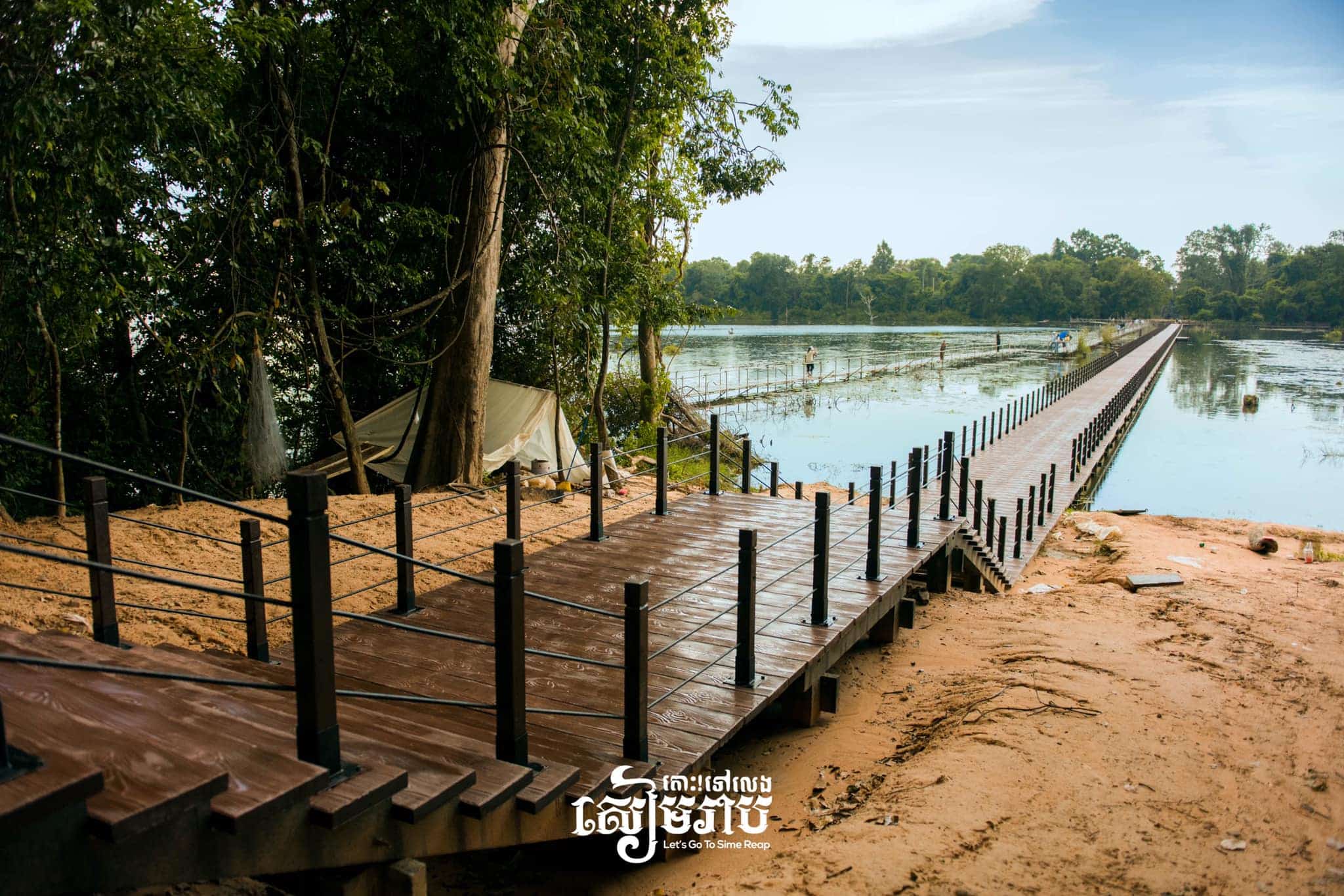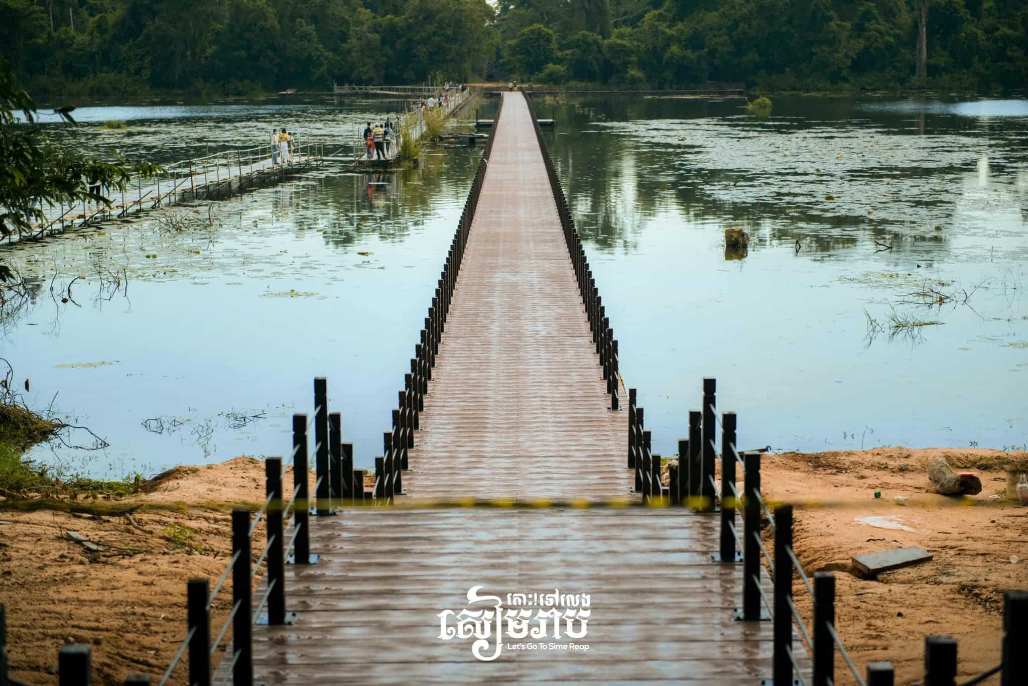 ជាមួយរូបរាងទាក់ភ្នែក ឈរមាំអន្លាយនៅលើផ្ទៃទឹកធំល្វឹងល្វើយដាច់កន្ទុយភ្នែក ស្ពានថ្មើរជើងនេះមិនត្រឹមតែជាទីចម្លងអ្នកទស្សនាចូលទៅកាន់ប្រាសាទទេ តែក៏ជាកន្លែងដែលអាចគយគន់ទេសភាពនៅសងខាងយ៉ាងស្រស់ត្រកាល និងជាទីមនោរម្យក្រៃលែង។