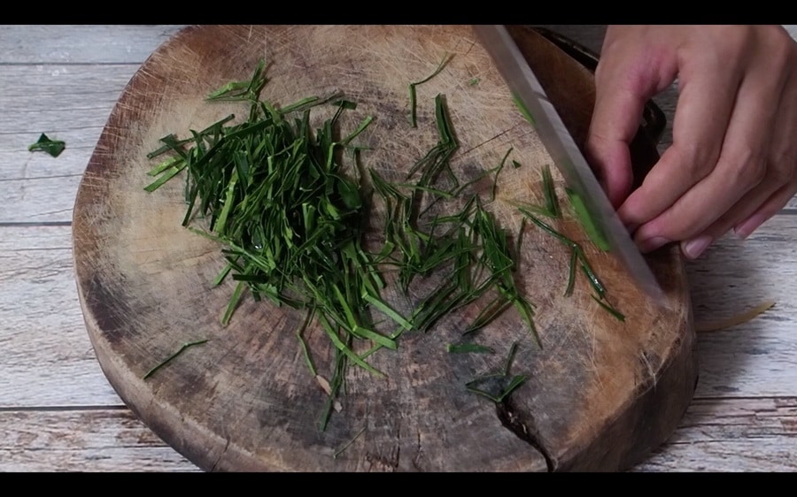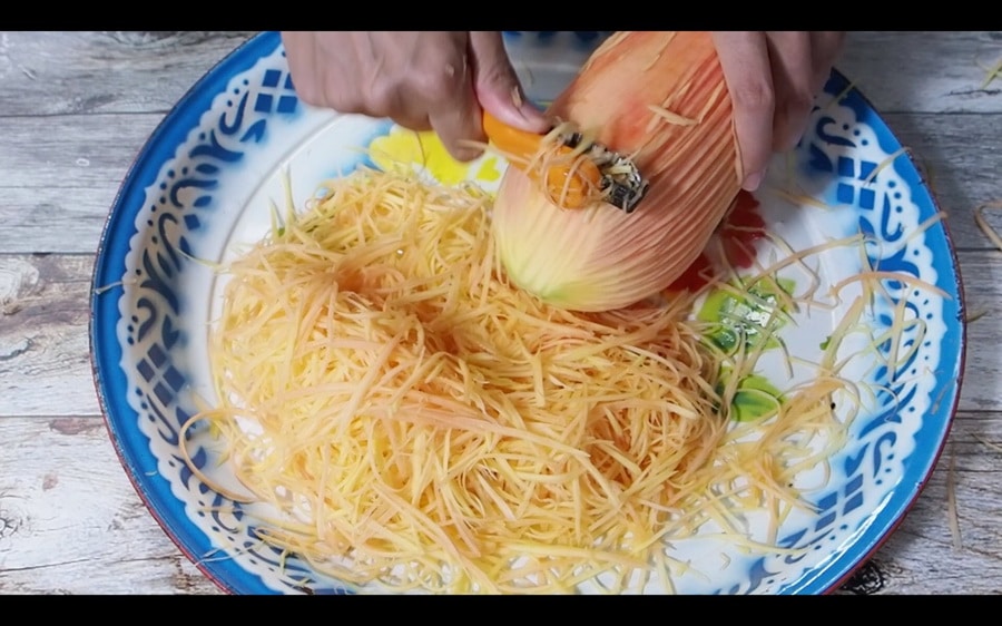 ១. បន្ទាប់ពីកោសល្ហុងជាសរសៃរួចរាល់យកល្ហុងមកដាក់ក្នុងចានធំមួយដើម្បីងាយស្រួលលាយគ្រឿង
