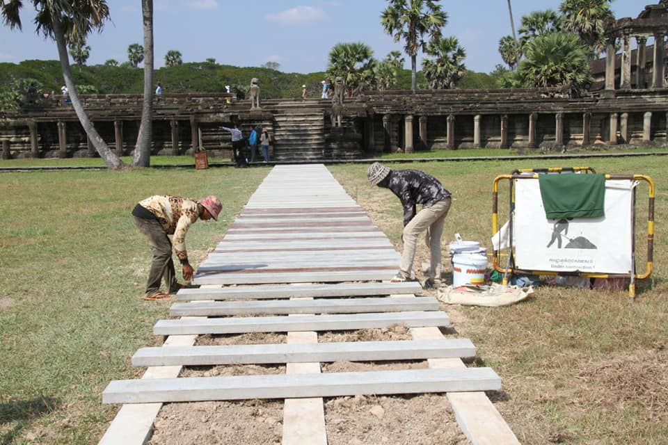 អាជ្ញាធរជាតិអប្សរា បានរៀបចំធ្វើកម្រាលផ្លូវដើរ នៅមុខប្រាសាទអង្គរវត្តរួចរាល់ក្នុងគោលដៅ កាត់បន្ថយភាពសឹករិចរិលរបស់ថ្ម នឹងគ្រប់គ្រងលំហូររបស់ភ្ញៀវទេសចរចូលមកទស្សនាក្នុងប្រាសាទ ឱ្យមានភាពល្អប្រសើរ។