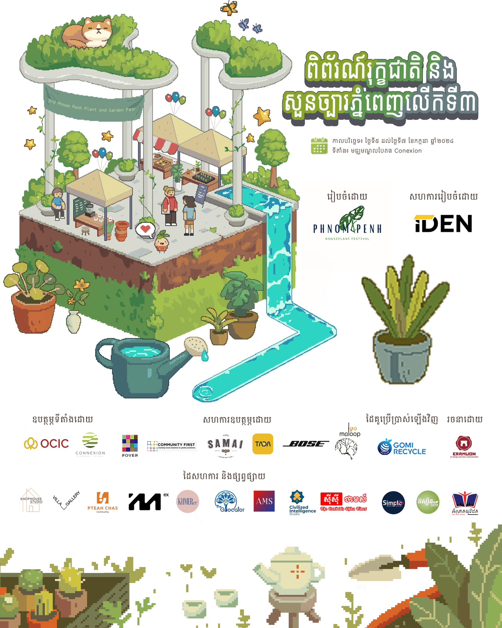 កម្មវិធីនេះរៀបចំឡើងដោយ Phnom Penh Houseplant Festival និងសហការរៀបចំដោយ IDEN CREATIVE CO,. LTD។ ព្រឹត្តិការណ៍នេះនឹងរៀបចំឡើងនៅថ្ងៃទី៥ ដល់ថ្ងៃទី៧ ខែកក្កដា ឆ្នាំ២០២៤ នៅទីតាំង មជ្ឈមណ្ឌលបៃតង Connexion កោះពេជ្រ។