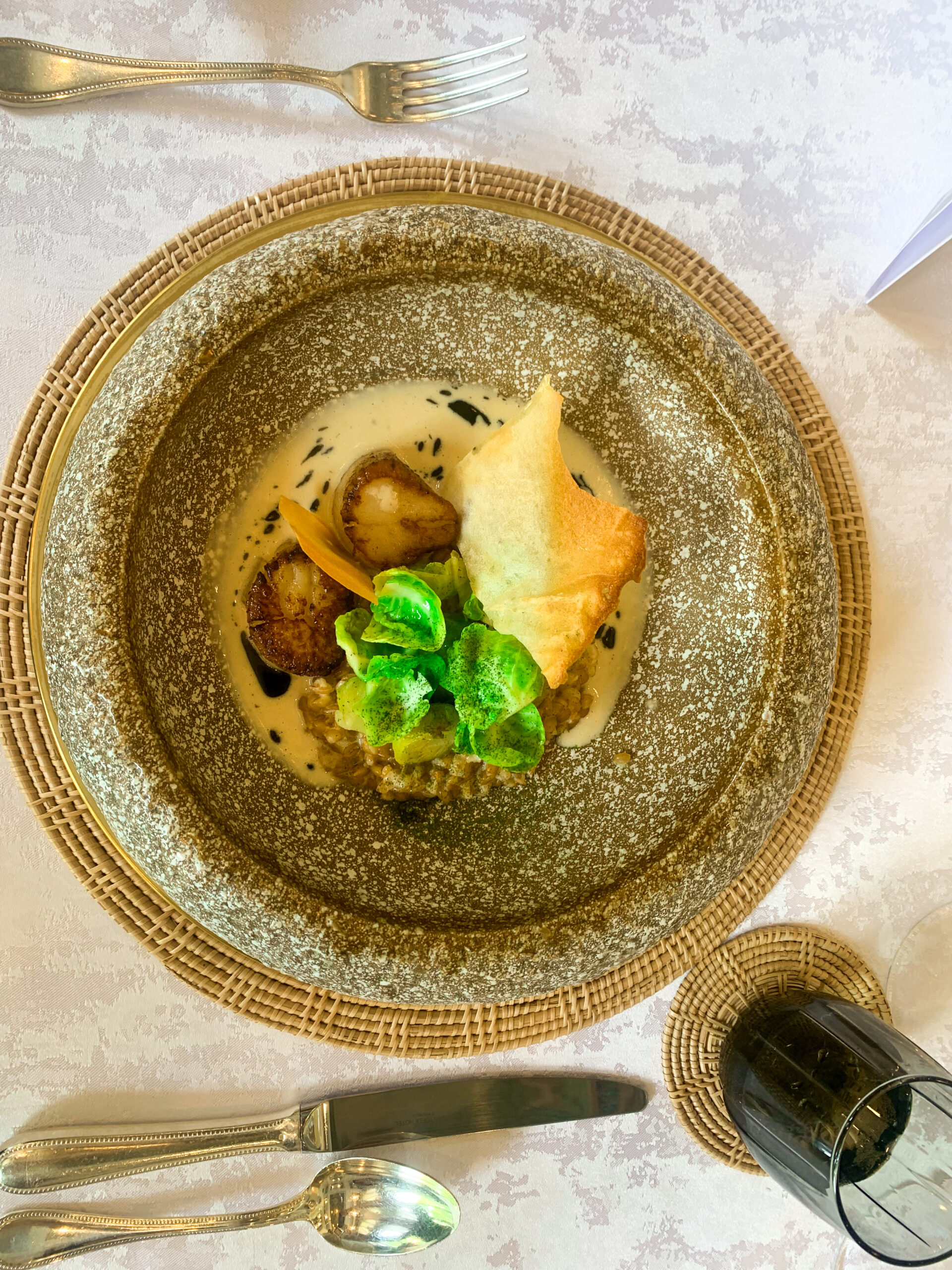 ភោជនីយដ្ឋាន Raffles Hotel Le Royal នឹងបង្ហាញជម្រើសអាហារឆ្ងាញ់ៗចំនួនពីរជារៀងរាល់ថ្ងៃ រួមទាំងឈុតអាហារពេលល្ងាច (តម្លៃ $88++) ចន្លោះម៉ោង ៦:៣០ល្ងាច ដល់ ១០:៣០យប់ និងឈុតអាហារថ្ងៃត្រង់ (តម្លៃ $38++) បម្រើចន្លោះម៉ោង ១២ថ្ងៃត្រង់ ដល់ ៣ រសៀល ។ អាហារទាំងអស់រួមបញ្ចូលការទទួលទានស្រាដោយសេរី បន្ថែមពីលើរសជាតិពិសេសរបស់ Louis XIII។