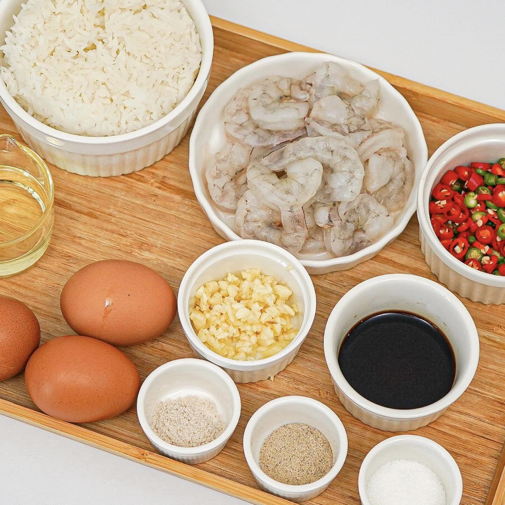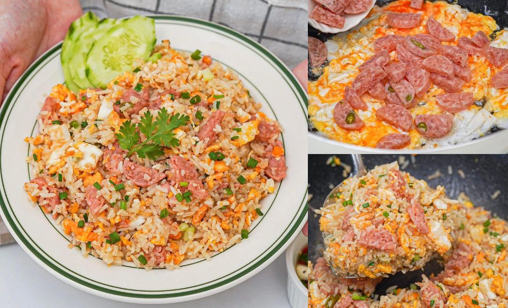 ២. បន្ទាប់គោះពងមាន់ឆាបន្តិច រួចចាក់បាយចូលហើយឆាម្ដងទៀត។