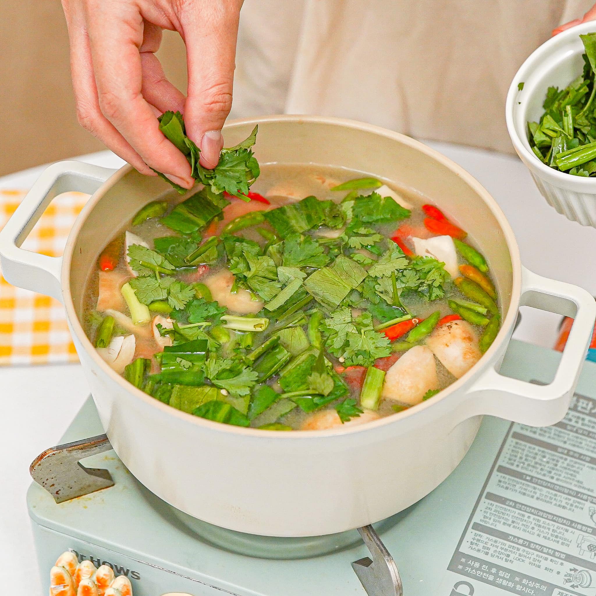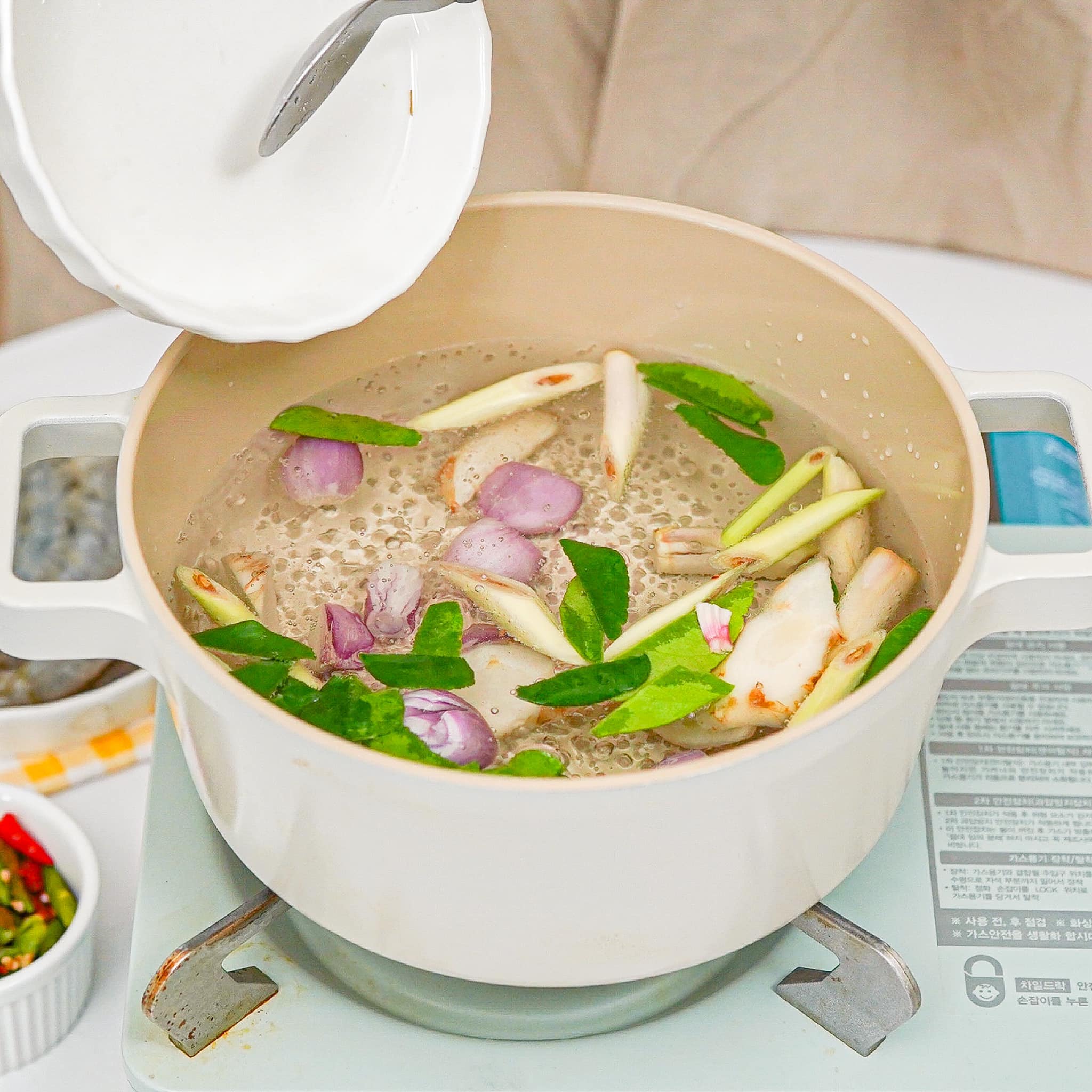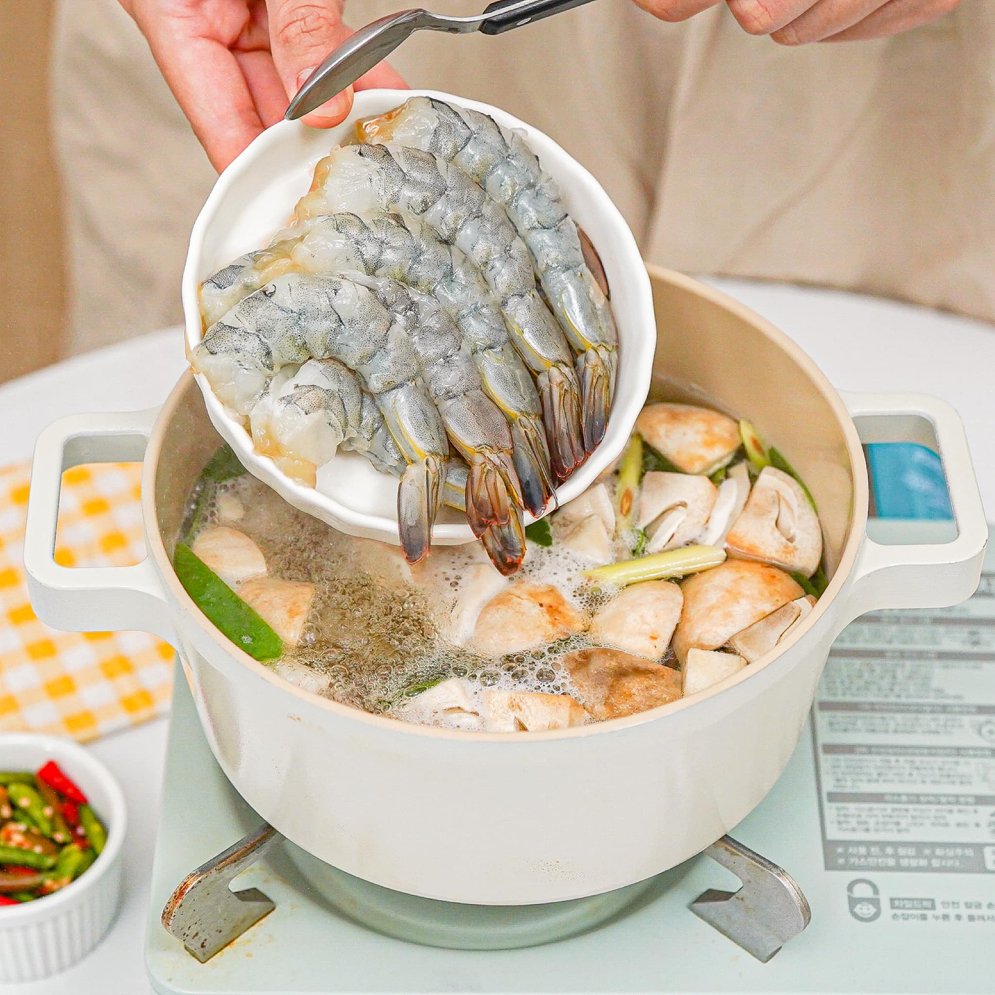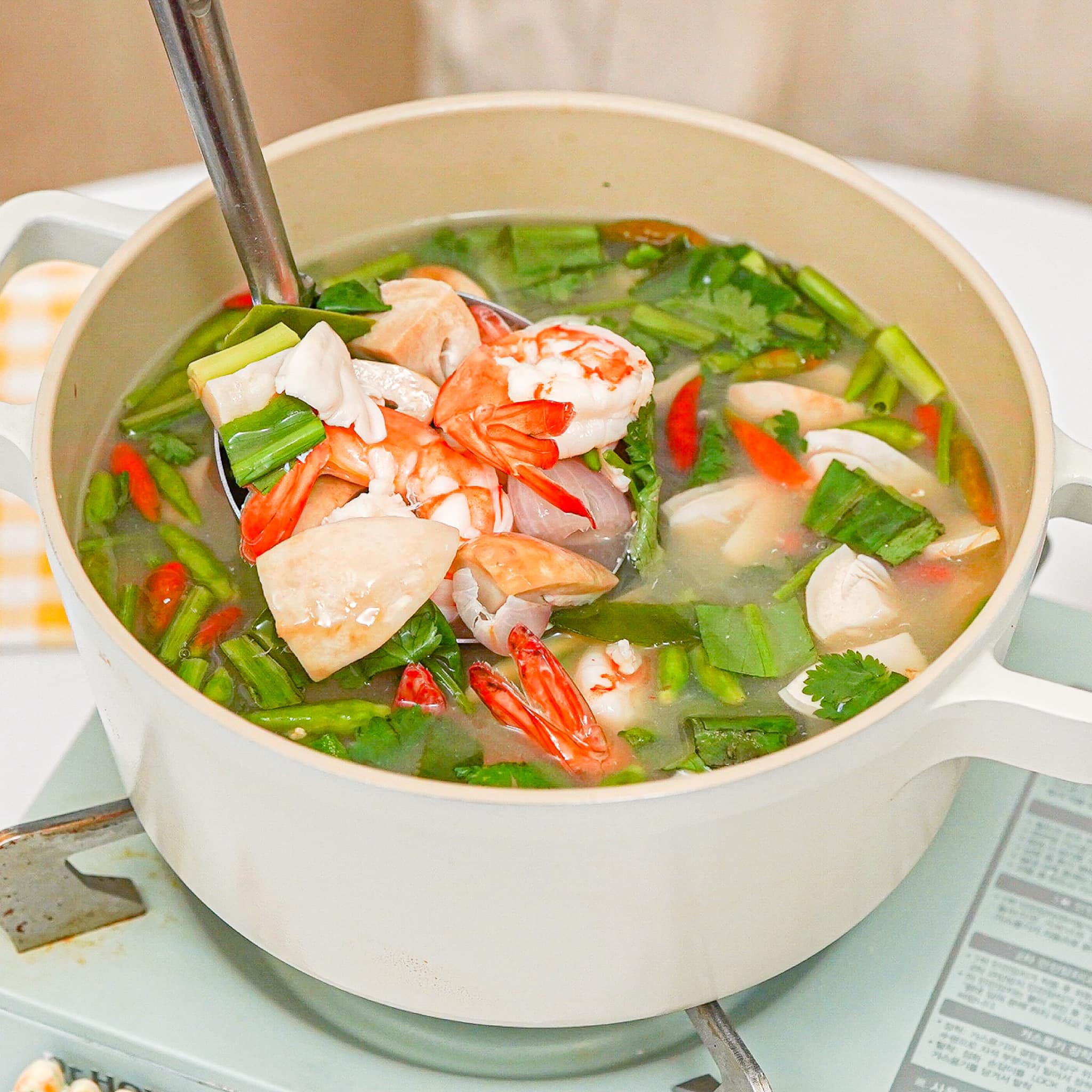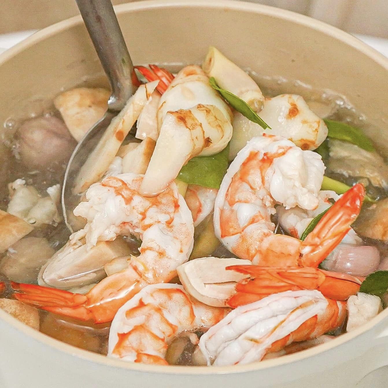 ២. ទុកឱ្យទឹកសម្លឡើងពុះបន្តិច សឹមដាក់បង្គាចូល និងរង់ចាំឱ្យល្មមបង្គាឆ្អិន។