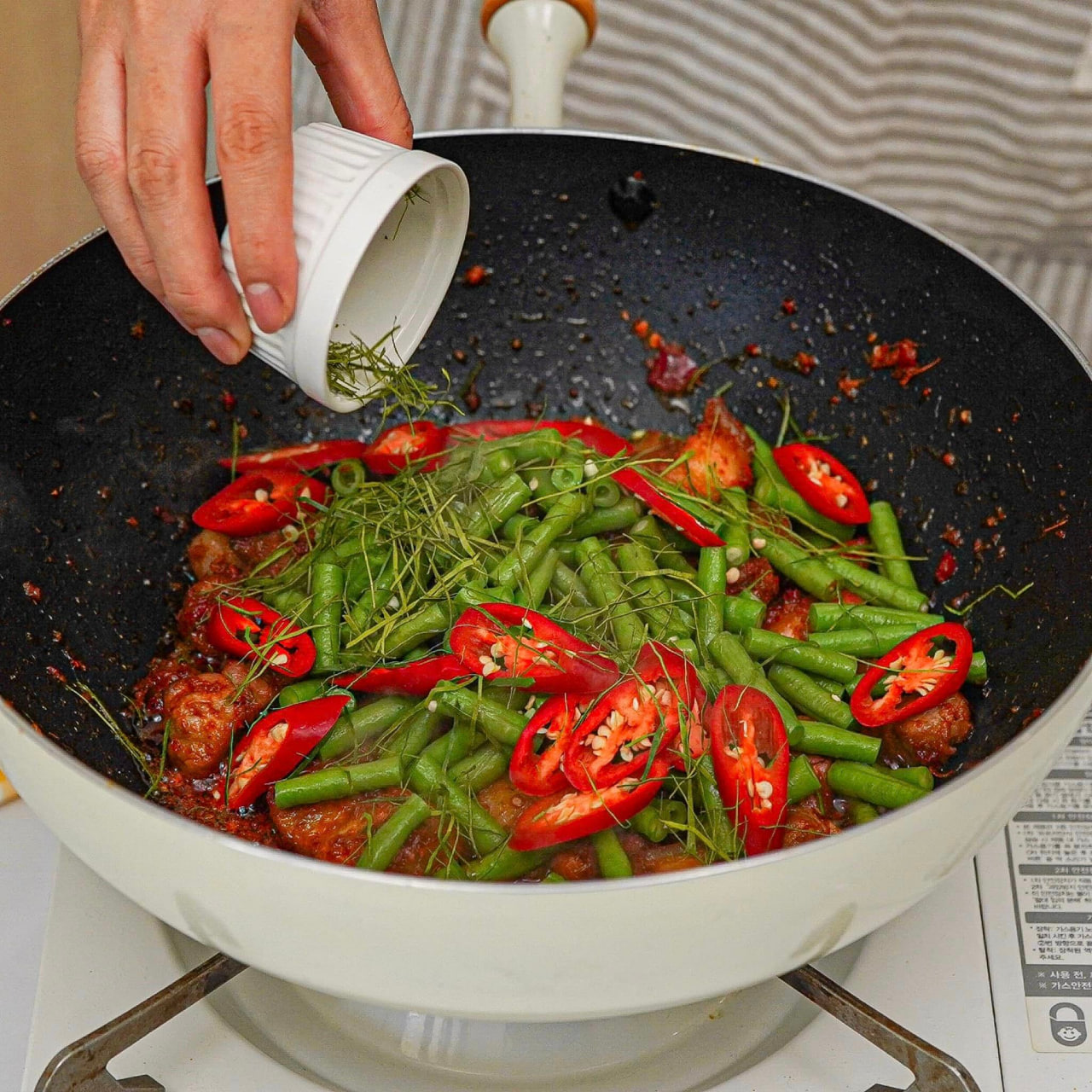 ៣. ចុងក្រោយភ្លក់មើលថាសមល្មមហើយ សឹមដាក់សណ្ដែកកួរ ស្លឹកក្រូចសើច និងម្ទេសហាវៃចូលជាការស្រេច៕