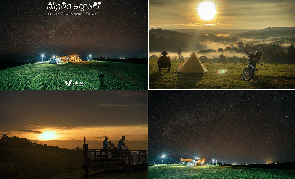 ប្រសិនបើអ្នកដំណើរចង់បោះតង់ និងរីករាយជាមួយទិដ្ឋភាពដ៏ស្រស់ត្រកាលនៅខេត្តមណ្ឌលគិរី Sunset Camping Resort-ជំរំថ្ងៃលិច មណ្ឌលគិរី ជាកន្លែងបោះតង់បែបផ្សងព្រេងដ៏មានផាសុកភាព ទេសភាពបៃតងយ៉ាងស្រស់ត្រកាលដ៏ទាក់ទាញ និងមានចម្ងាយមិនឆ្ងាយប៉ុន្មានពីទីរួមខេត្ត ហើយជាកន្លែងមើលថ្ងៃរះ និងថ្ងៃលិចដ៏ស្រស់ស្អាតបំផុតមើលបាន 360ដឺក្រេ។