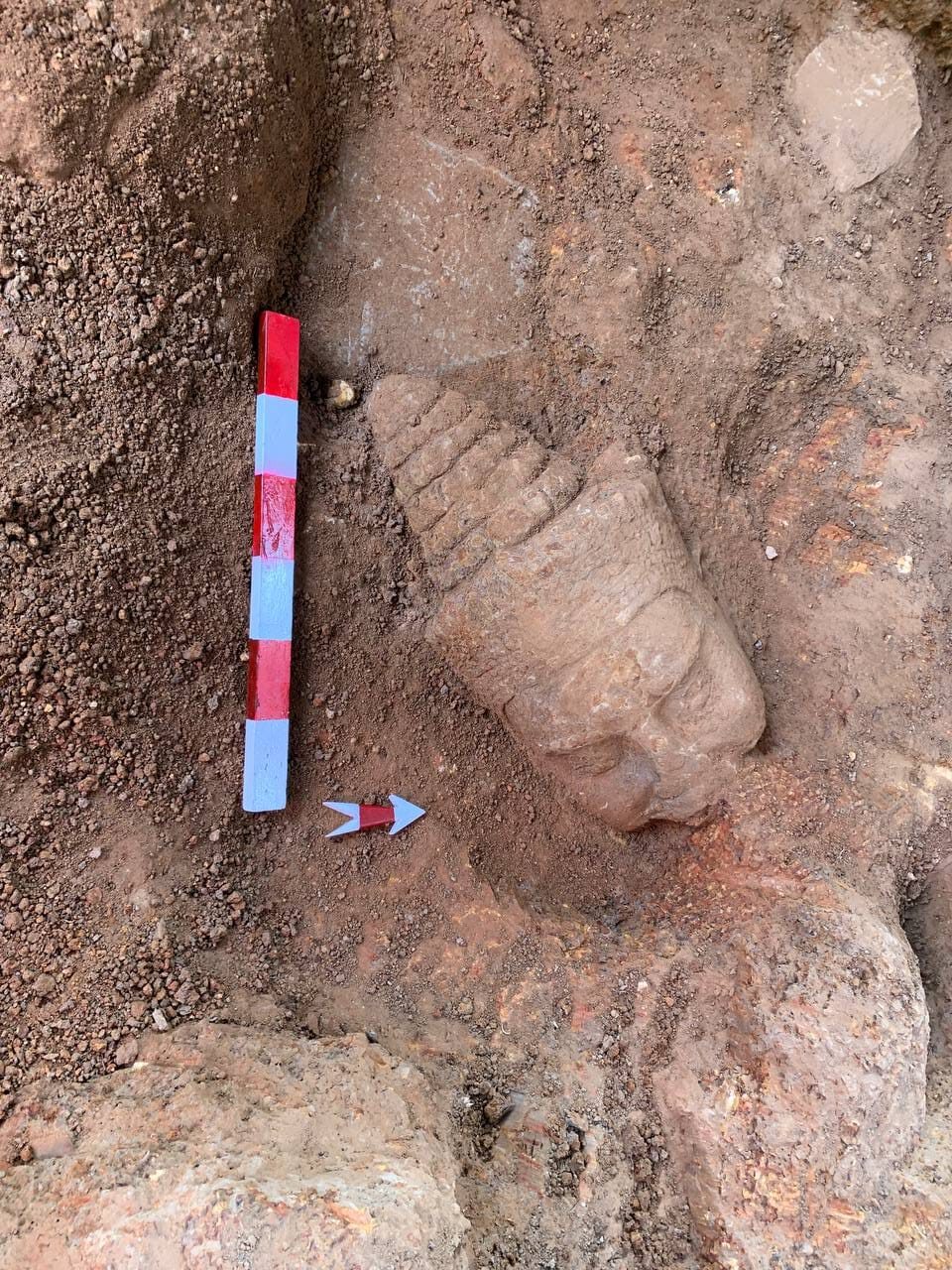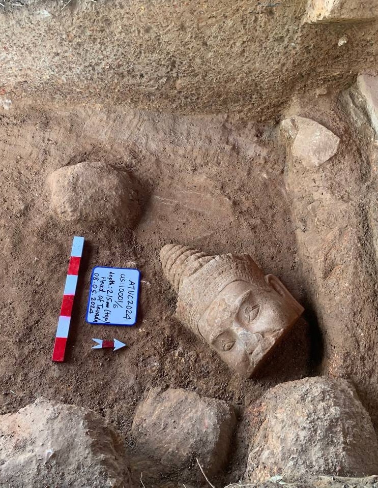 តាមការឱ្យដឹងពីអ្នកជំនាញ សិរសាទេវតាមួយនេះបានធ្លាក់ចេញពីរូបទេវតានៅត្រង់ចំណុចលេខទី ២៣ (រាប់ពីជួរខាងមុខ)។ ព្រះកេសសិរសាទេវតាមួយនេះធ្វើឡើងពីថ្មភក់ មានបណ្ដោយ ២០ សង់ទីម៉ែត្រ,ទទឹង ១១ សង់ទីម៉ែត្រ និងកម្ពស់ ១២ សង់ទីម៉ែត្រ។