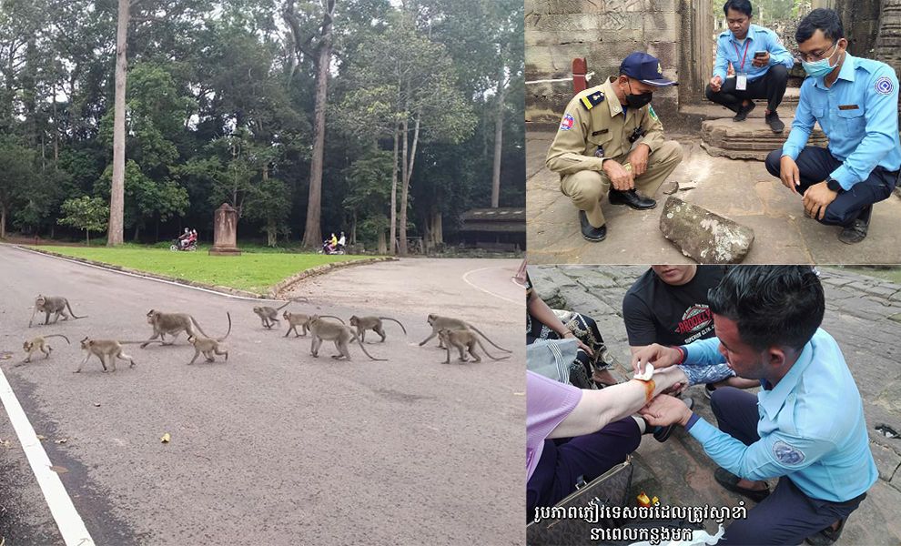 យោងតាមទំព័រហ្វេសប៊ុករបស់អាជ្ញាធរជាតិអប្បរាបានឲ្យដឹងថា «នៅតំបន់ក្រុងអង្គរធំឯណោះវិញ សត្វស្វាក៏កំពុងបង្កការរំខាន និងហានិភ័យ ដល់ភ្ញៀវទេសចរ ក៏ដូចជាថ្មប្រាសាទផងដែរ។ លោក សៀន បណ្ឌិត ប្រធានក្រុមភ្នាក់ងារទេសចរណ៍ប្រចាំក្រុងអង្គរធំ ប្រាប់ឱ្យដឹងថា តាមការអង្កេតពីក្រុមការងាររបស់លោក សត្វស្វានៅតំបន់អង្គរធំអាច មានរាប់រយក្បាល។ សត្វស្វាទៅខាំភ្ញៀវ ទាញរបស់របរភ្ញៀវ ទាញទូរស័ព្ទ ទាញកាបូប ប្រតោងលើប្រាសាទធ្វើឲ្យខូចខាតបរិក្ខាទេសចរណ៍ និងជ្រុះថ្មមកក្រោម។ ក្រៅពីនេះ សត្វស្វាដែលតែងមានចរិតរពឹស បានតោងឡាន និងធ្វើឱ្យបាក់កញ្ចក់ និងបាក់ផ្លិតរថយន្ត»។