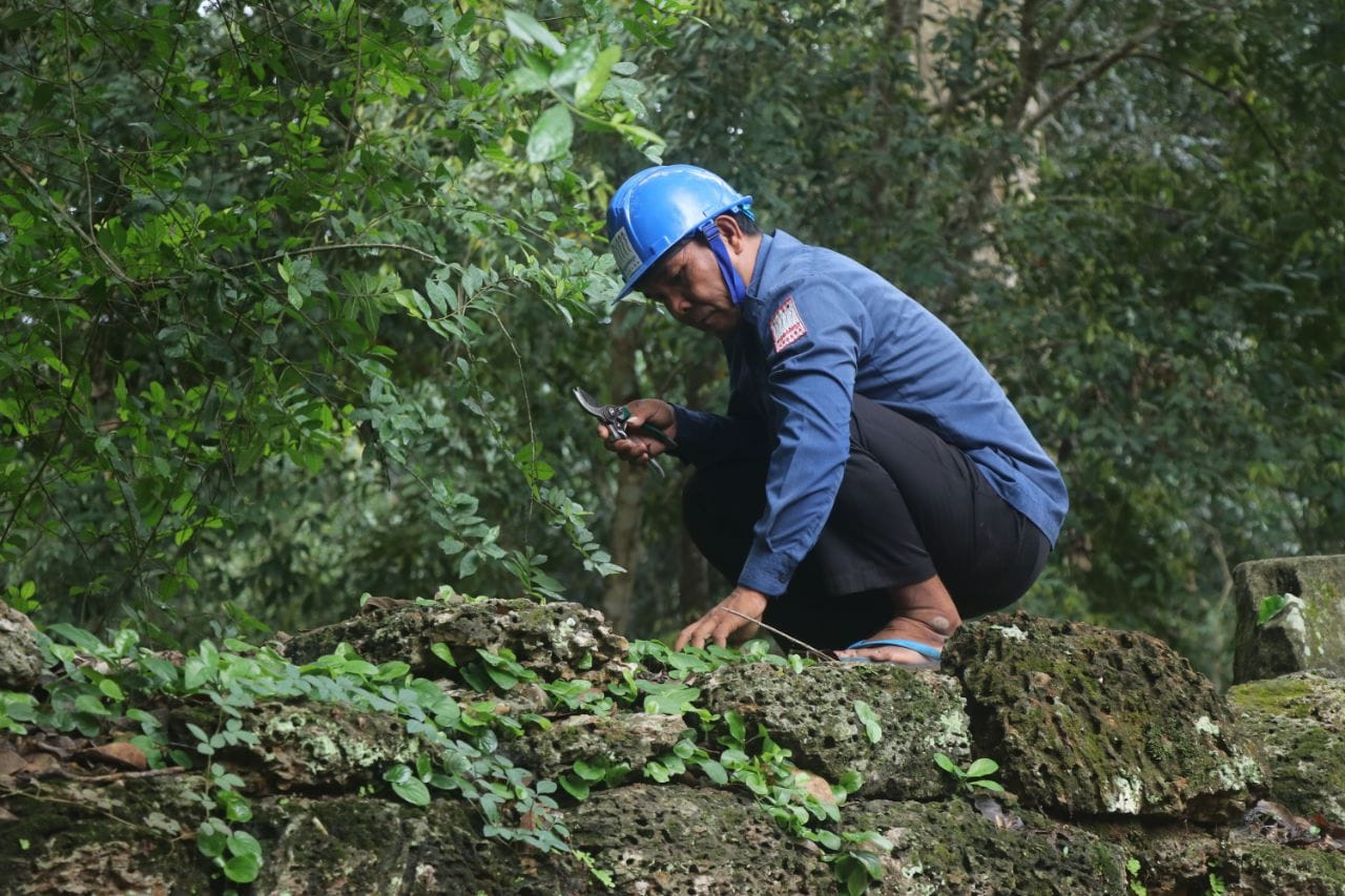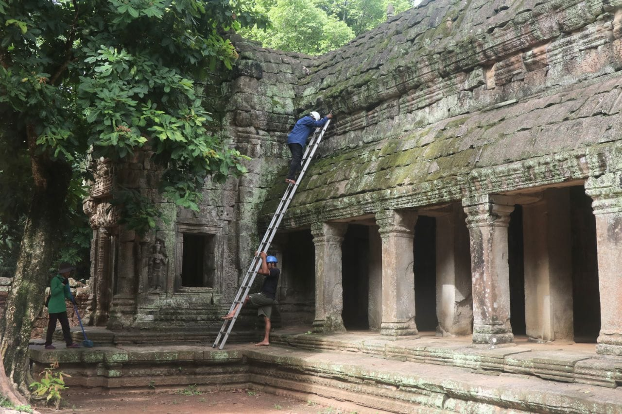 លោកបានបន្តទៀតថា ការសម្អាតត្រូវធ្វើឡើងញឹកញាប់ជាងគេ គឺនៅរដូវវស្សា បច្ចេកទេសក្នុងការសម្អាតតាមប្រាសាទធ្វើឡើងដោយមានជណ្ដើរ មួកសុវត្ថិភាពក្នុងការរក្សាសុវត្ថិភាពពេលឡើងទៅលើកំពូលប្រាសាទ ឬផ្នែកផ្សេងៗ ដើម្បីដកស្មៅ និងកូនរុក្ខជាតិតូចៗ។